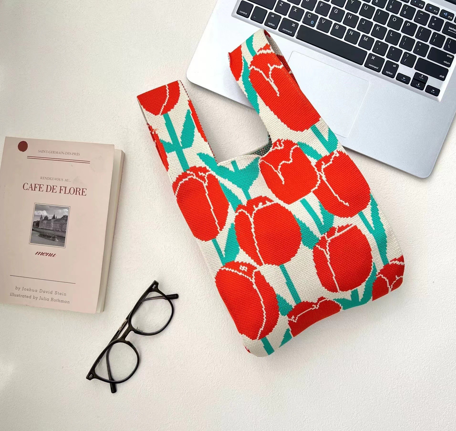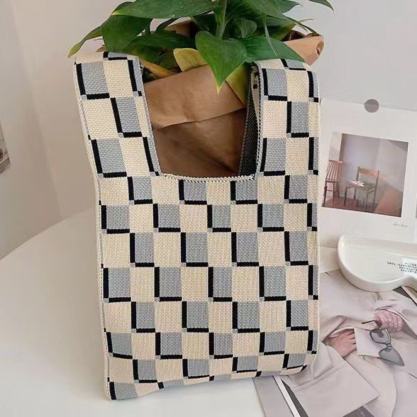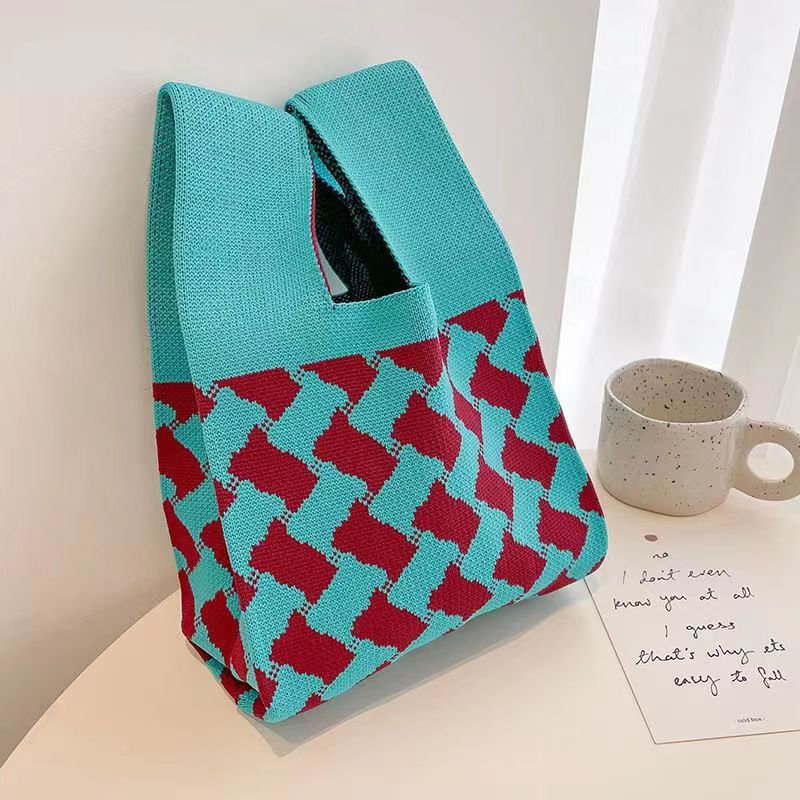 ins Spring Flower women's bag, knitted handbag, versatile knitted bag, wrist bag, single-shoulder bucket bag, tote bag