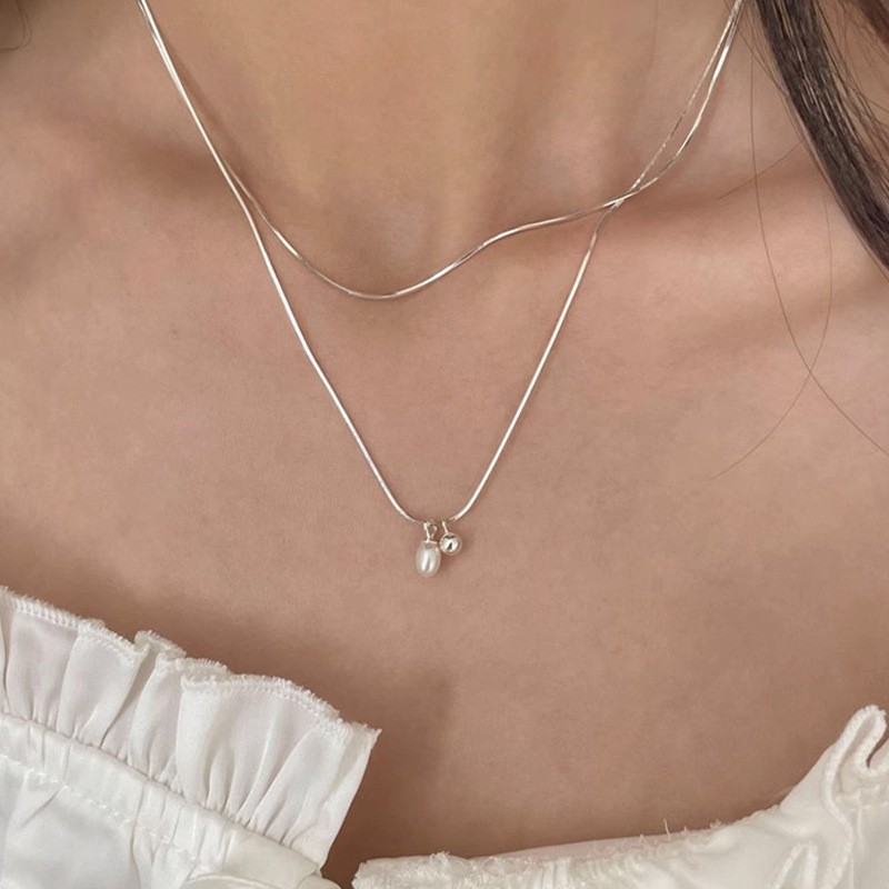 Ins-style pearl shell summer versatile necklace, women's bow, non-fading, niche design sense collarbone chain accessory