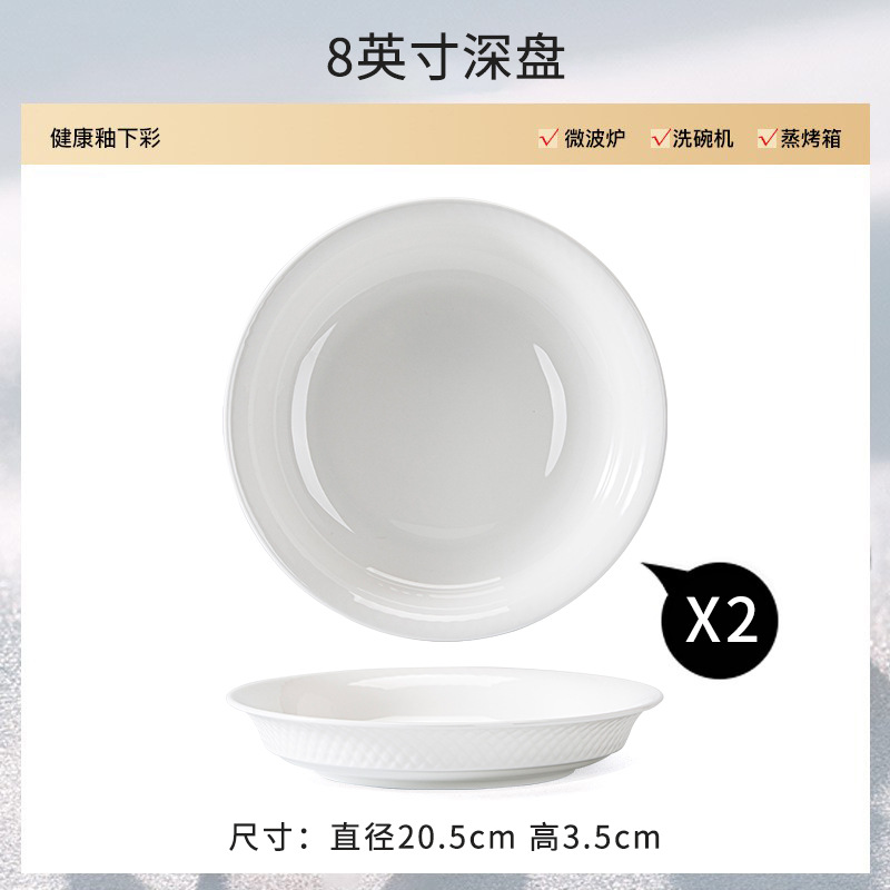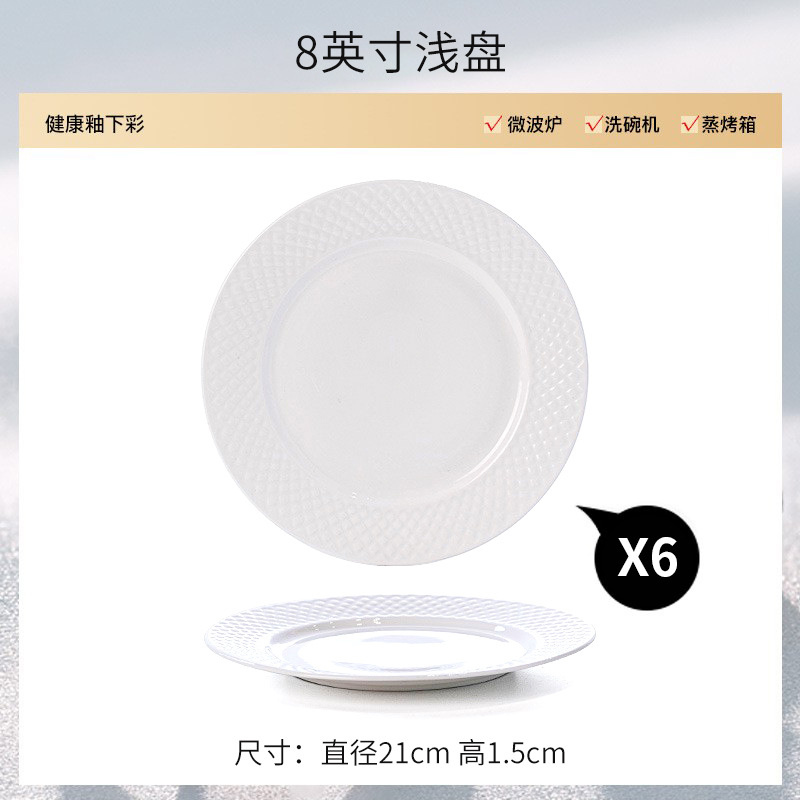 Ins-style simple threaded Western plates, high-end household tableware, straw hat plates, vegetable plates, soup plates, dinner plates, deep plates