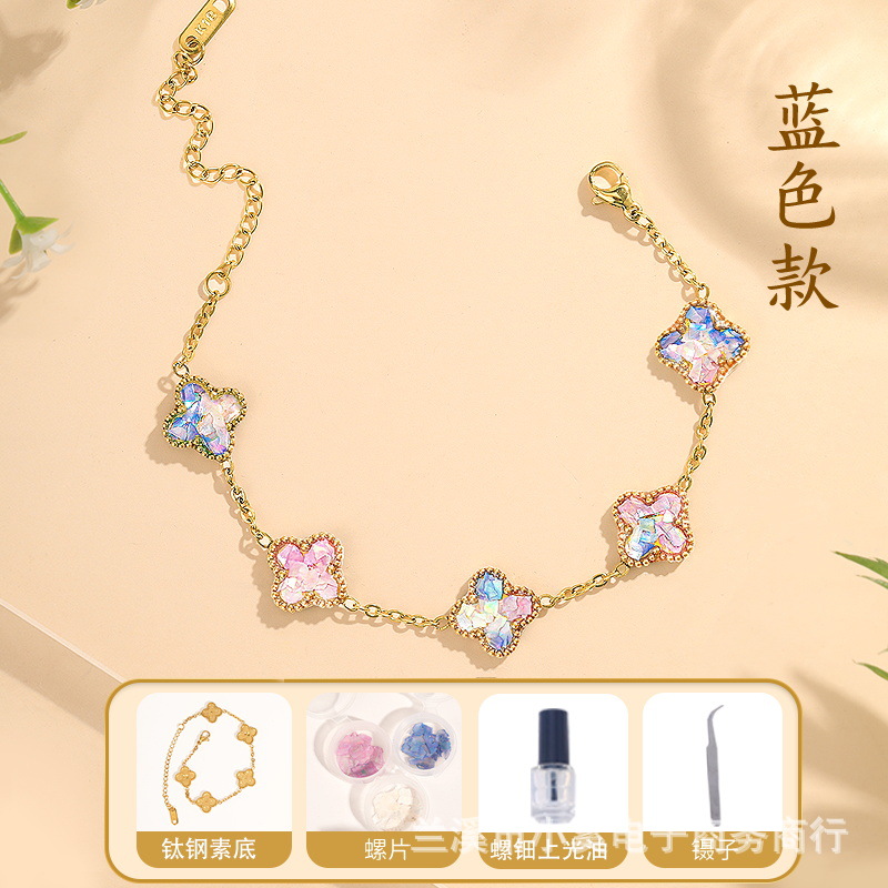 Standard style [Mother-of-Pearl Carbon Steel Bracelet - Blue Four-leaf Clover] full set of materials