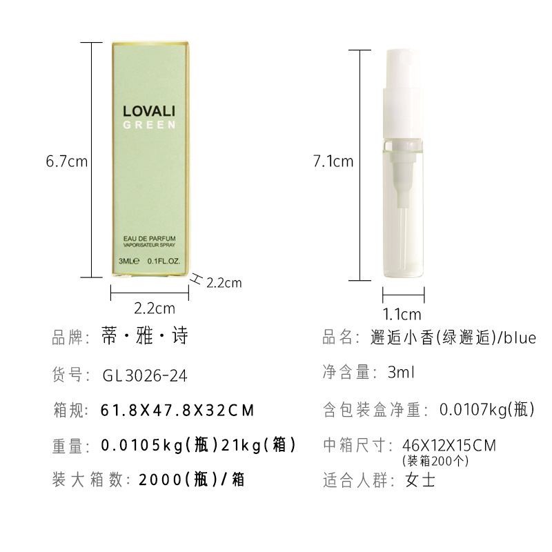 "Internet Celebrity Tongxiang 3ml trial bottle perfume for women, Q-version test tube perfume sample wholesale, affordable alternative to big brand fragrances.