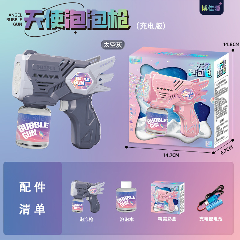 Angel Bubble Gun Space Gray - Color Box (Rechargeable Version) : [Comes with 1 bottle of bubble water +1 Set of Rechargeable lithium batteries