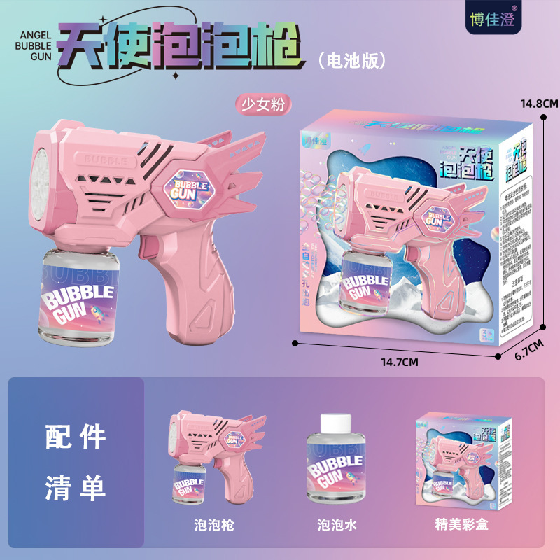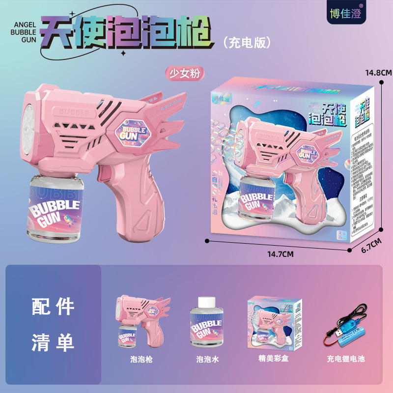 Angel Bubble Gun Girl Pink - Color Box (Rechargeable Version) : [Comes with 1 bottle of bubble water +1 Set of Rechargeable lithium batteries