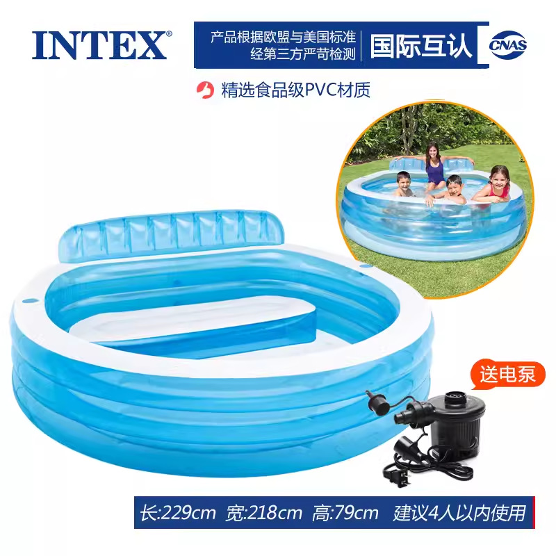 57190 backrest family water play pool + European standard electric pump (7.3kg)224*216*76cm with patch