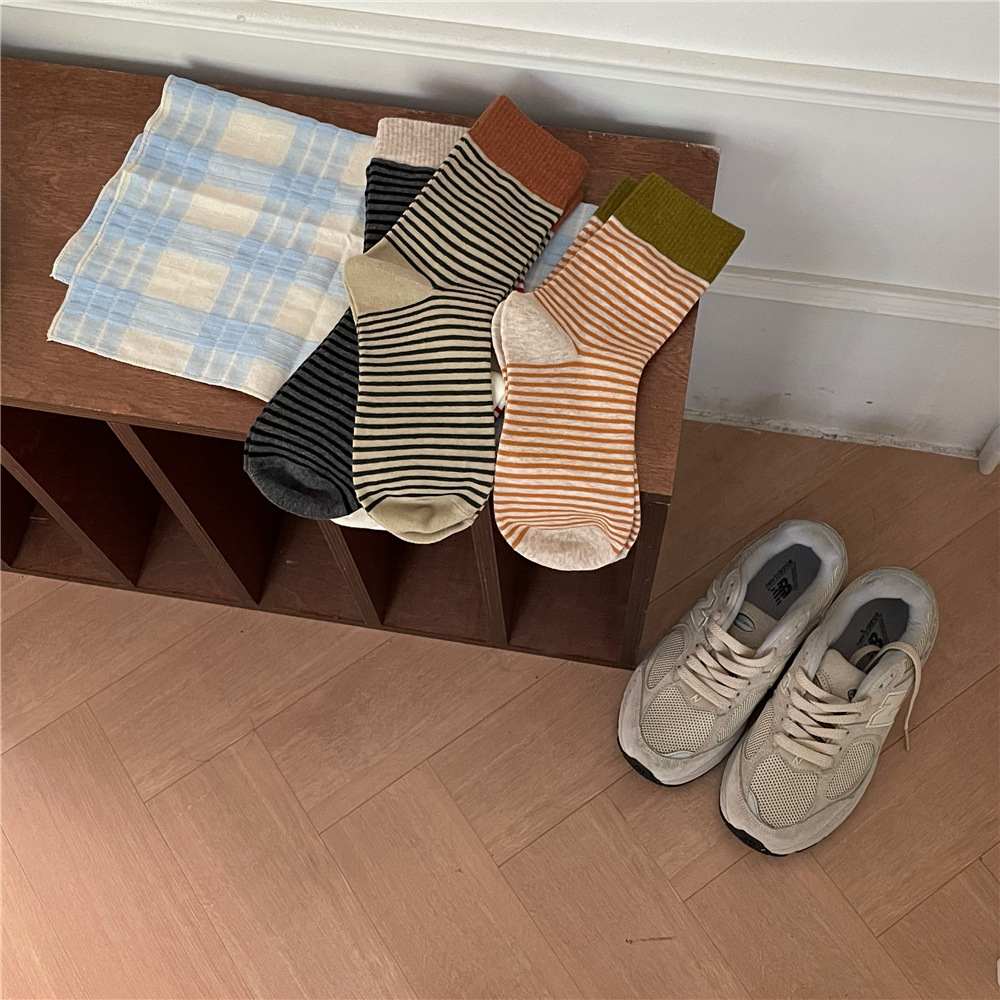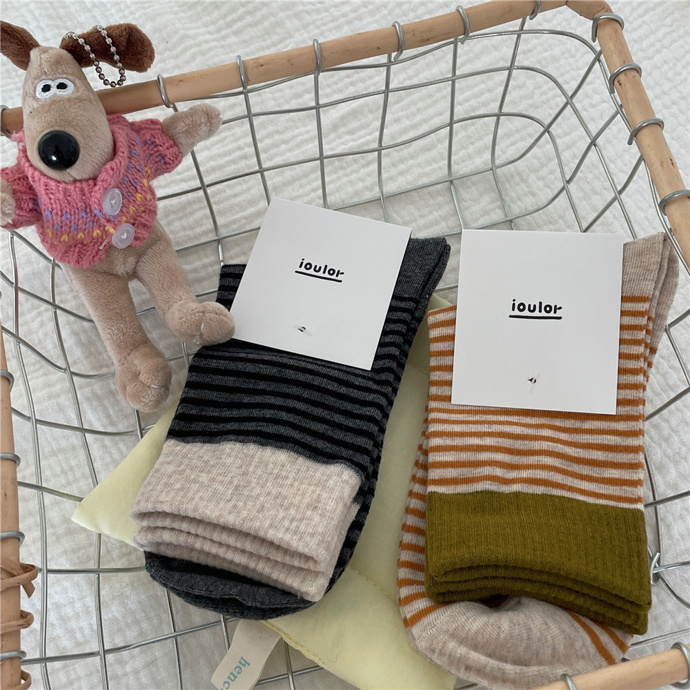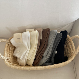 | IOULOR autumn and winter wool socks, Japanese-style mid-calf socks, solid color pile socks, thickened versatile double-needle Zhuji socks wholesale |