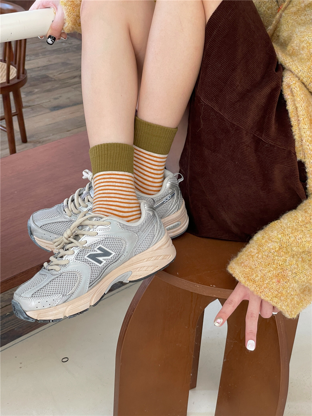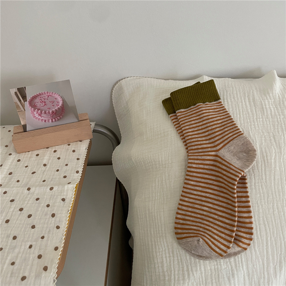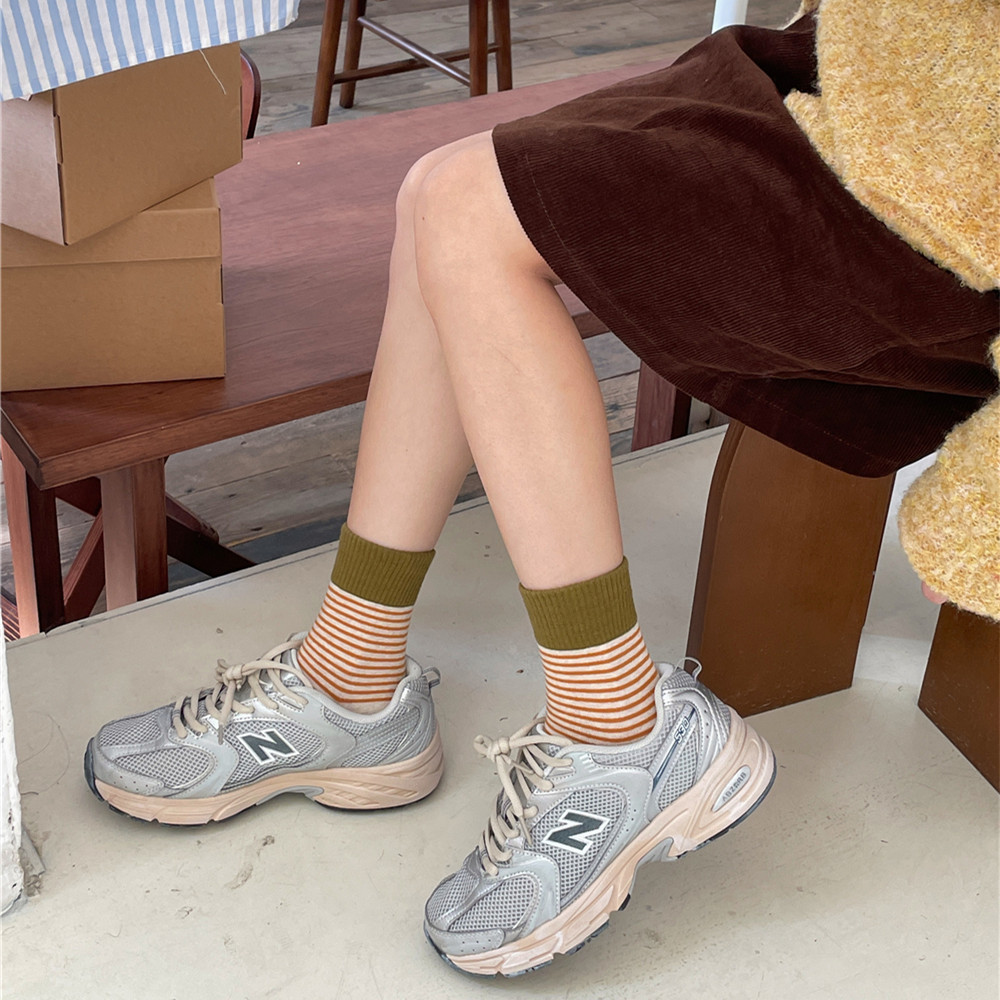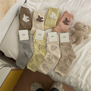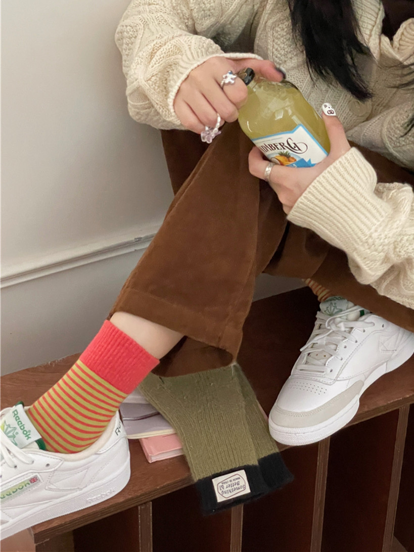 | IOULOR wool calf socks, thickened autumn and winter socks, brown double-needle pile socks, Japanese women's socks and knee-length socks wholesale |