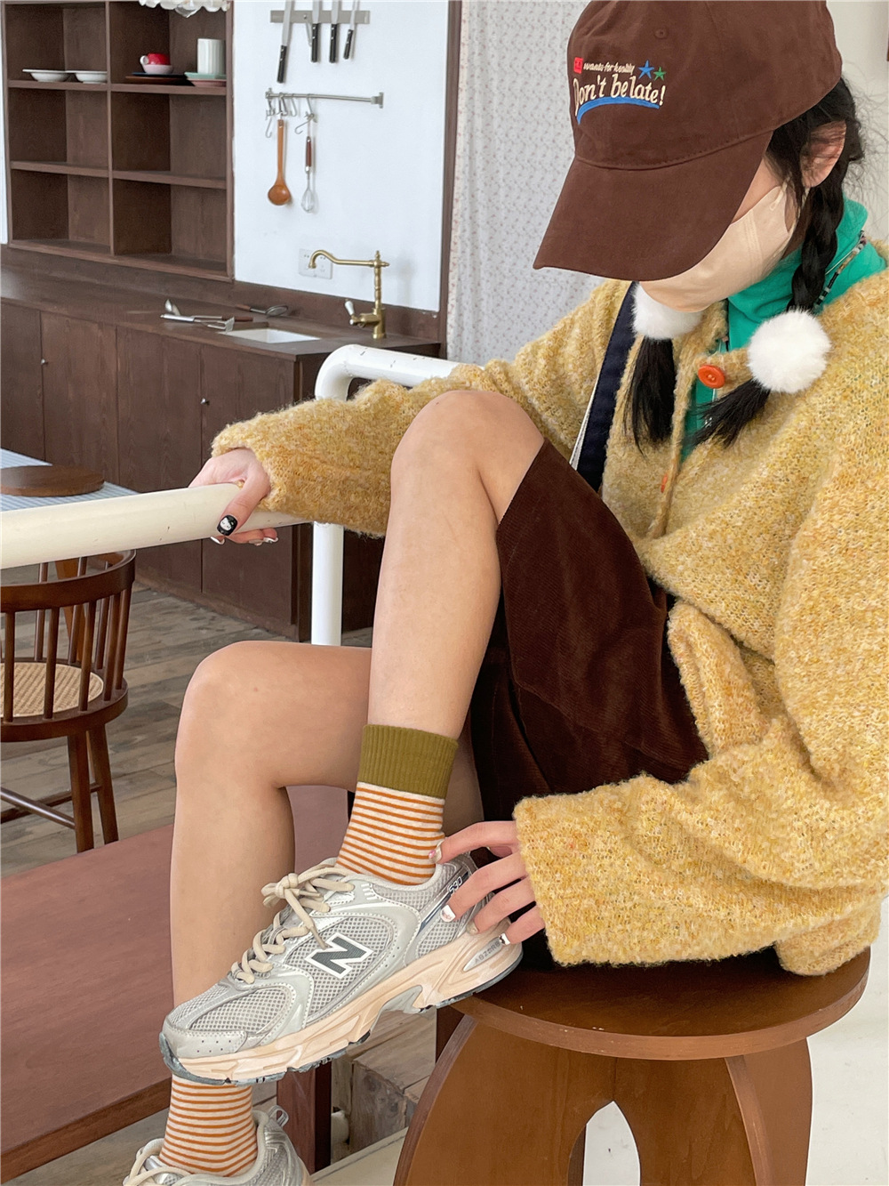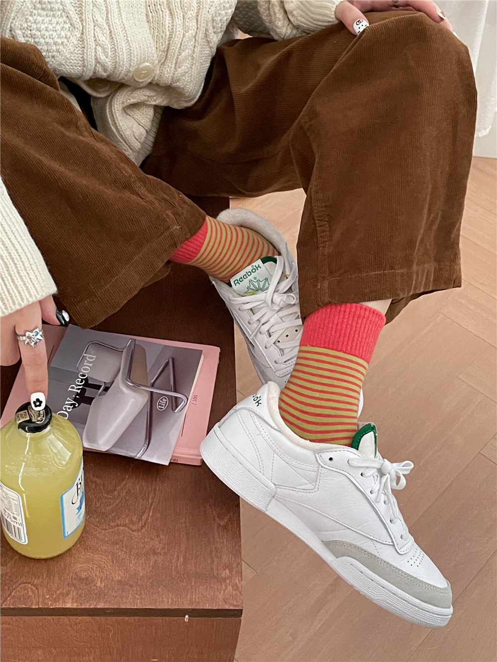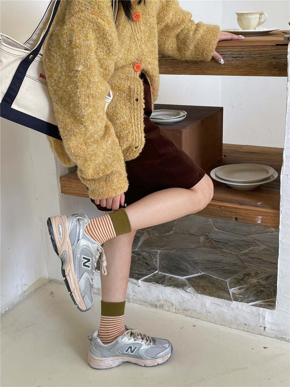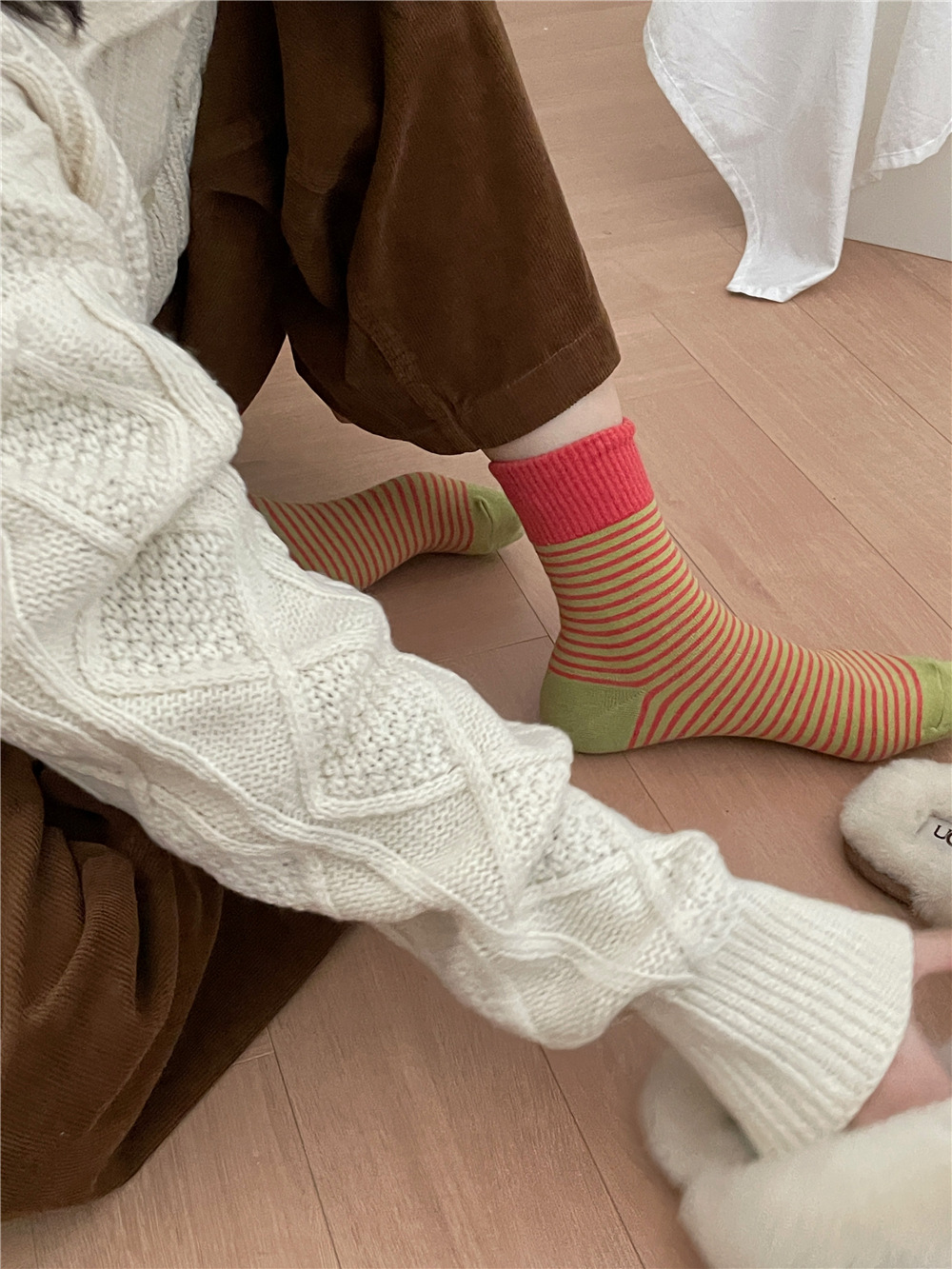 | IOULOR wool calf socks, thickened autumn and winter socks, brown double-needle pile socks, Japanese women's socks and knee-length socks wholesale |