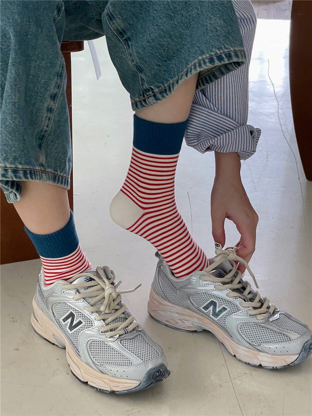 | IOULOR's new Christmas socks, wool socks, snowman Santa Claus, cute ins style tube socks, striped women's socks |