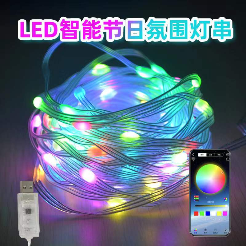 Iridescent leather thread light, curtain light, APP point control, Bluetooth, ball and bead light string, RGB horse running string light, Christmas light