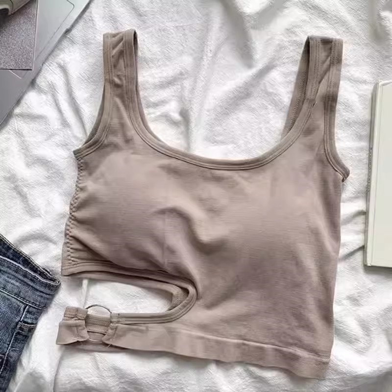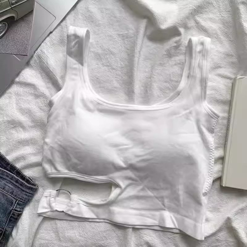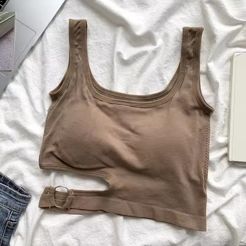Irregular pure desire, beautiful back for women in summer, wearing an inner tank top with a halter top, sleeveless, and an outer top with buttons for a slimming design