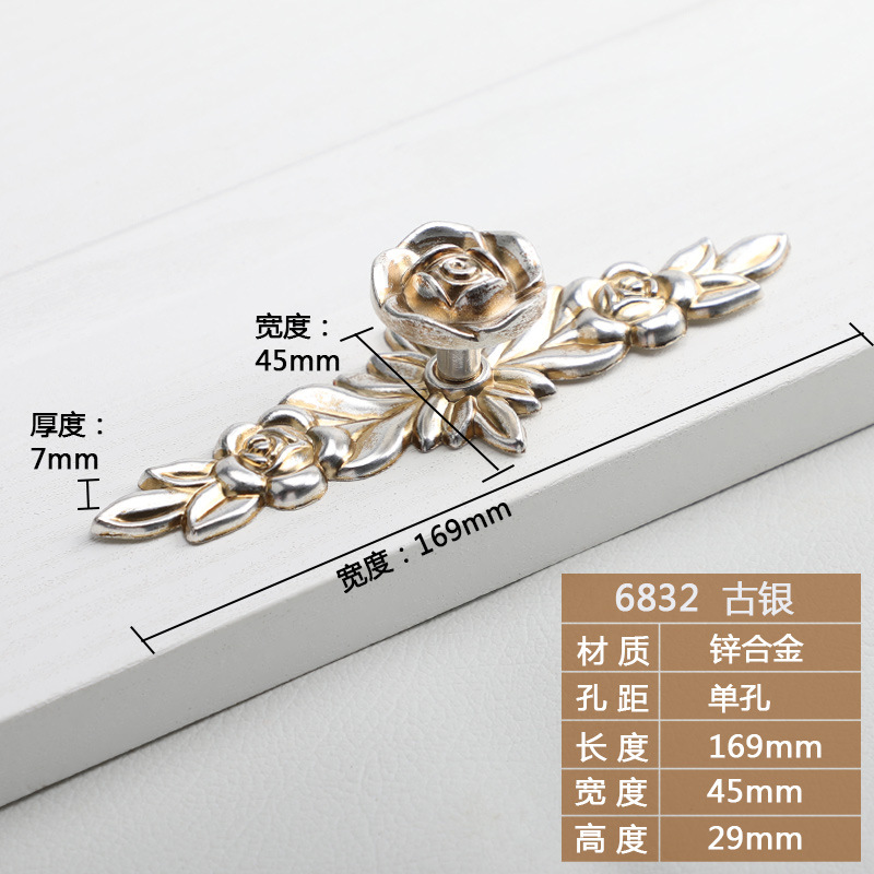 Ivory white handle, European-style lacquered cabinet door handle, modern furniture handle, single-hole silver-white rose-shaped small handle