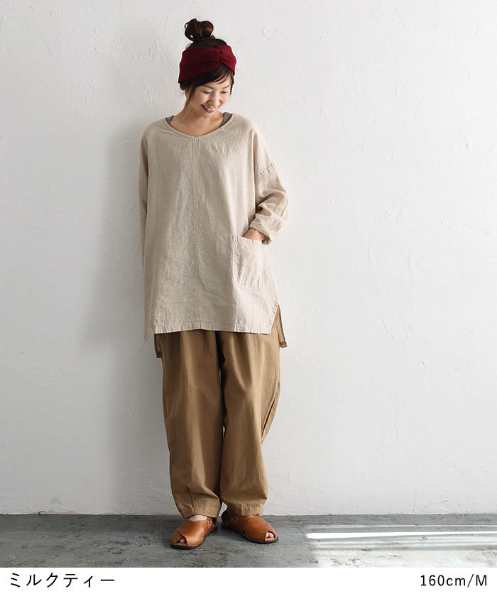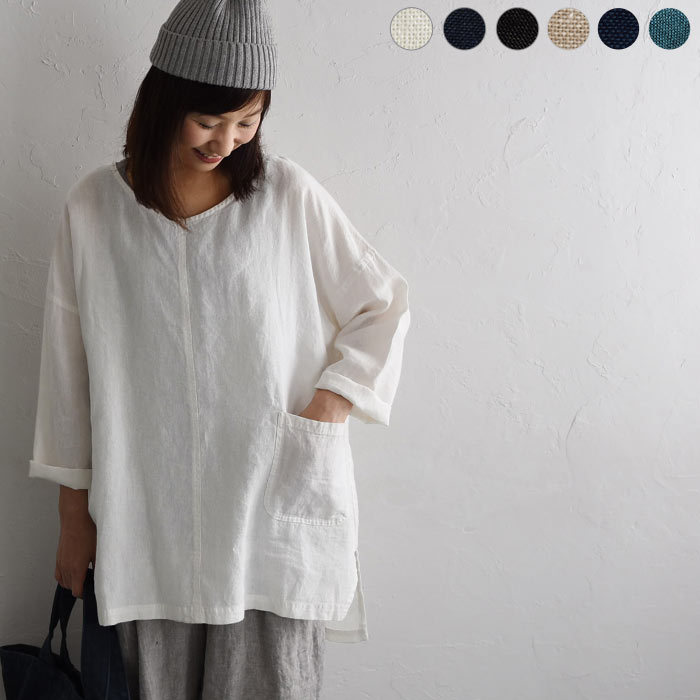 Japanese 2022 Spring and Autumn new collection: Retro, artistic, loose V-neck, irregular cotton and linen long-sleeved top, women's cotton and linen T-shirt