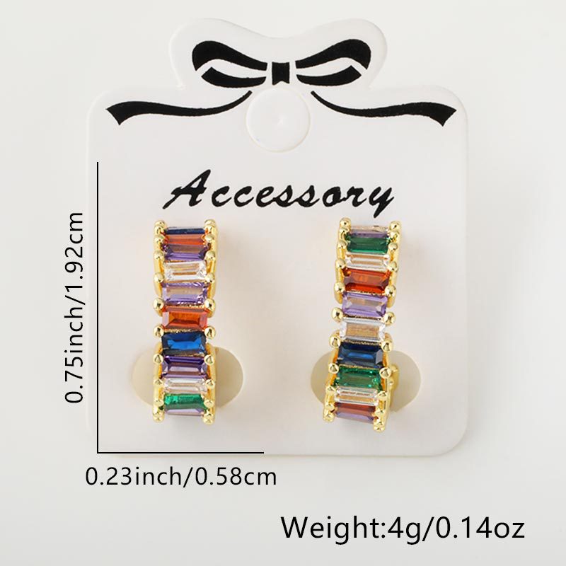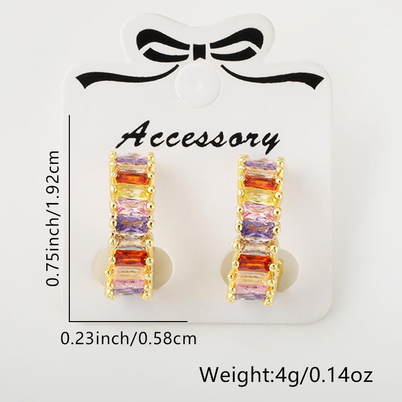Japanese and Korean fashion semi-round stud earrings, simple and elegant for women, ins niche design, high-end feel, colorful zircon earrings and earrings
