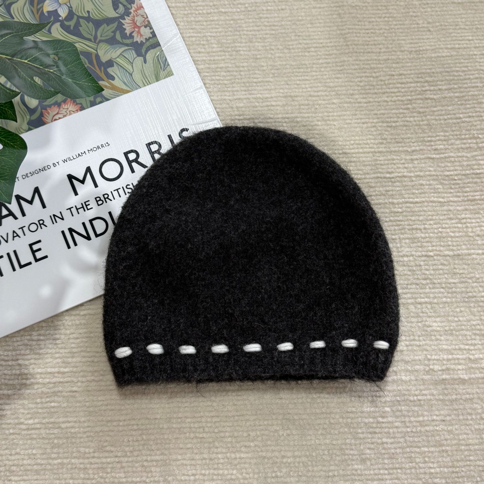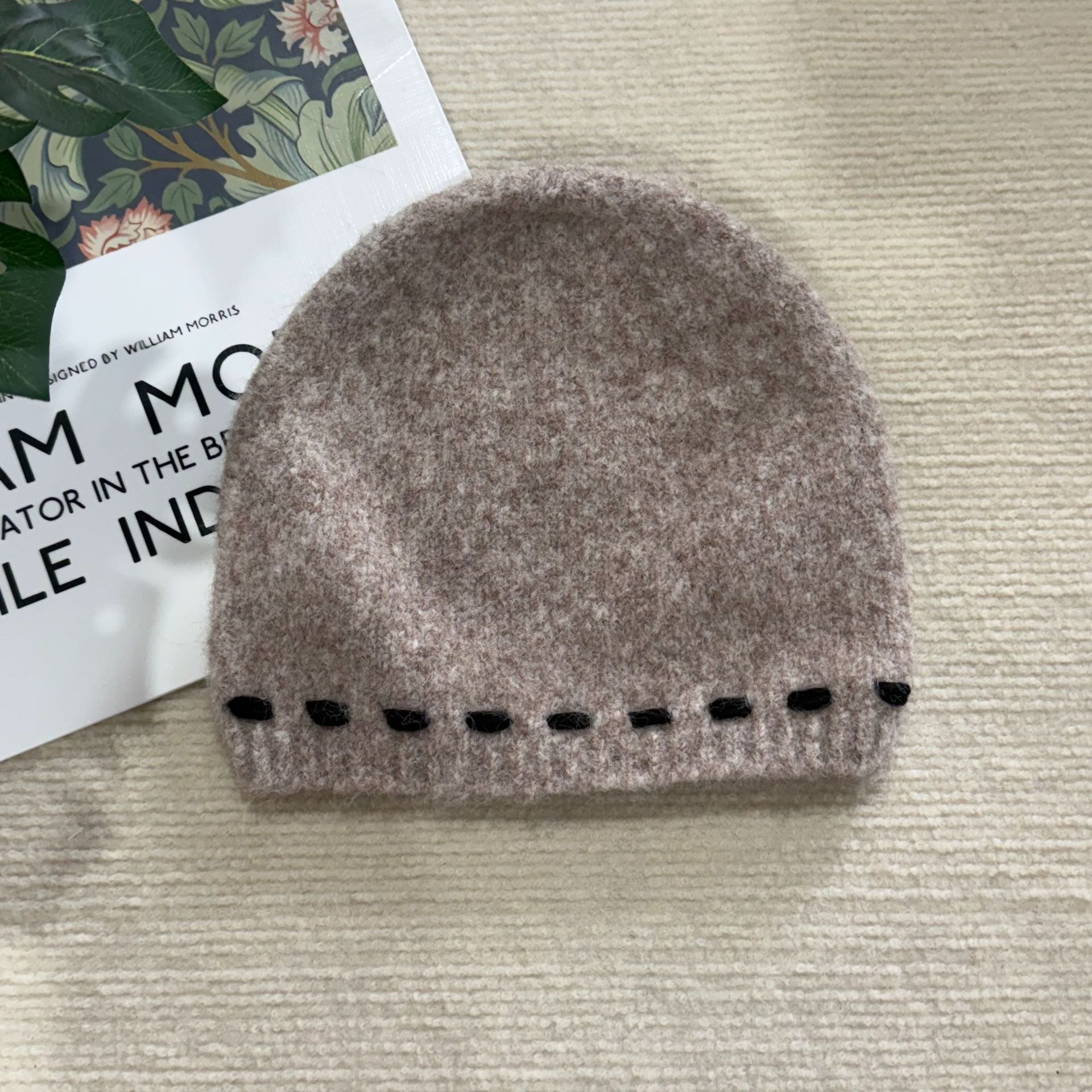 Japanese-style Australian wool knitted hats, women's autumn and winter bucket hats, simple embroidered line fisherman hats, versatile fashion hats