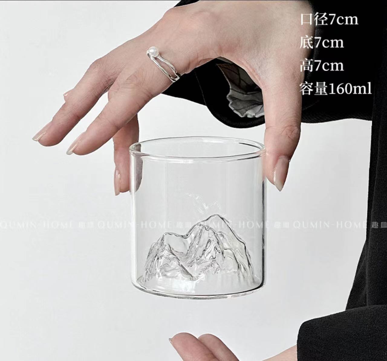Japanese-style creative mountain-viewing glass cups, retro Chinese trend high-temperature resistant Fuji Mountain tea cups, household snow mountain cups, coffee water cups
