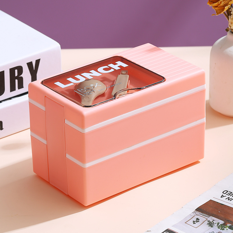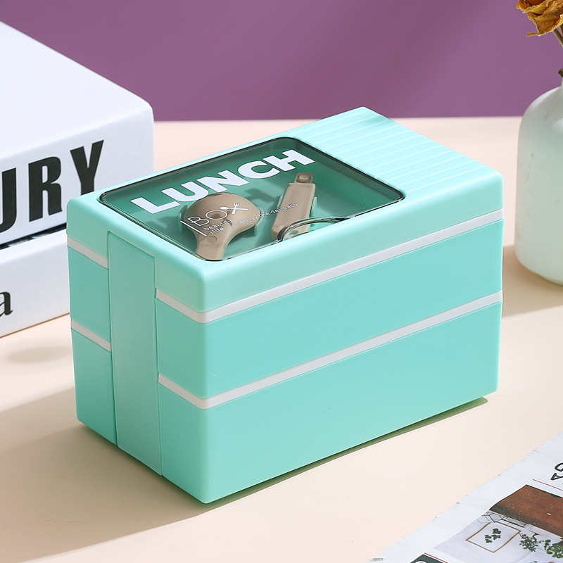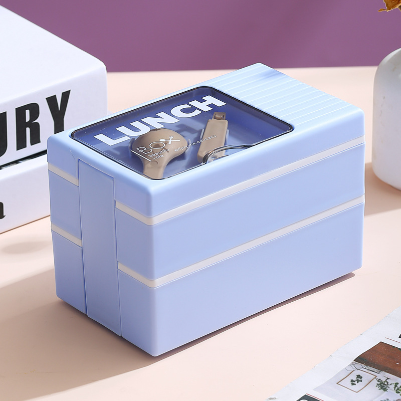 Japanese-style double-layer plastic lunch box, office worker lunch box, microwave oven sealed insulated lunch box, portable student lunch box
