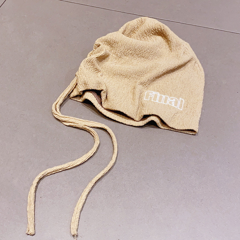 Japanese-style drawstring black pile hat, versatile for men and women in all seasons, cold hat, postpartum hat to show off face, small bun hat trend