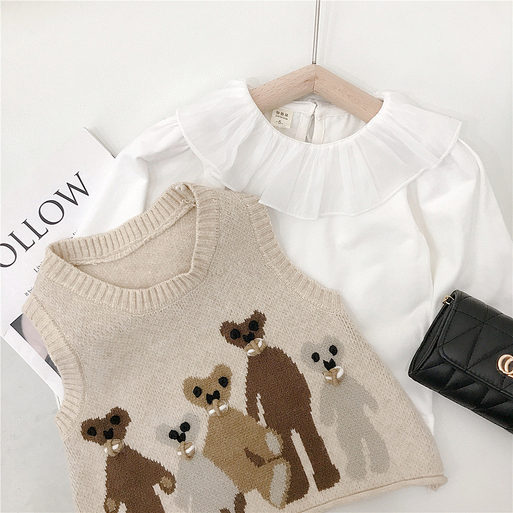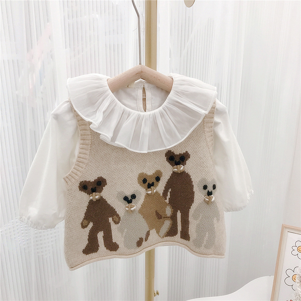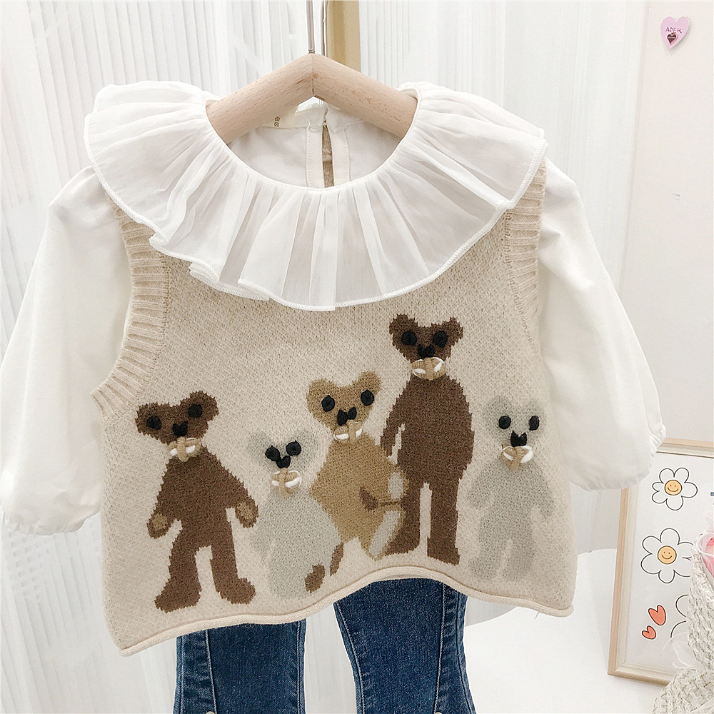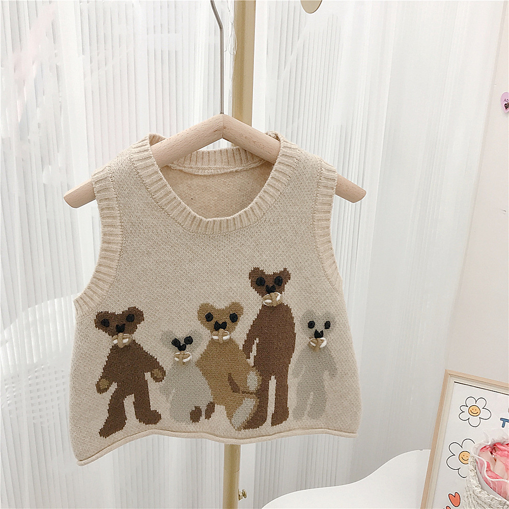 Japanese-style girls' retro school-style knitted sweater vest, cool and cute bear vest for autumn and winter, baby girl vest