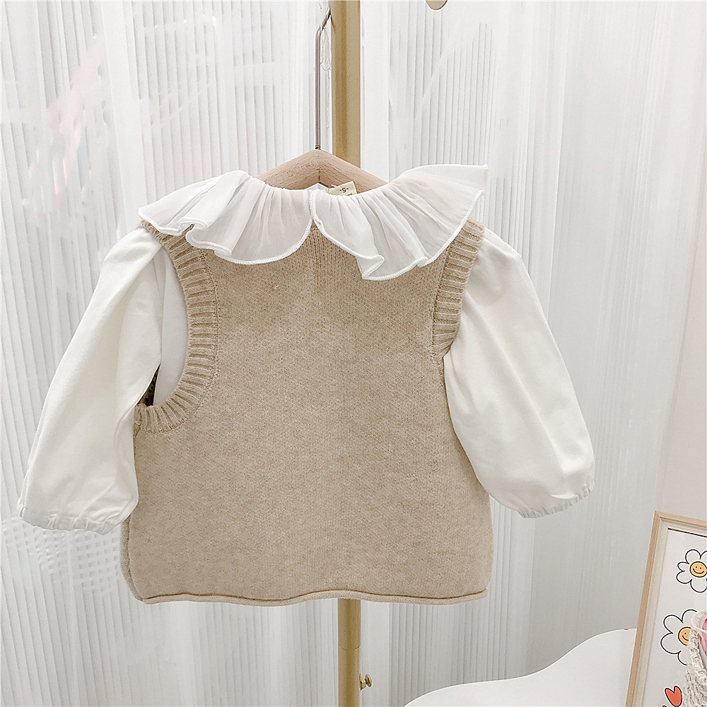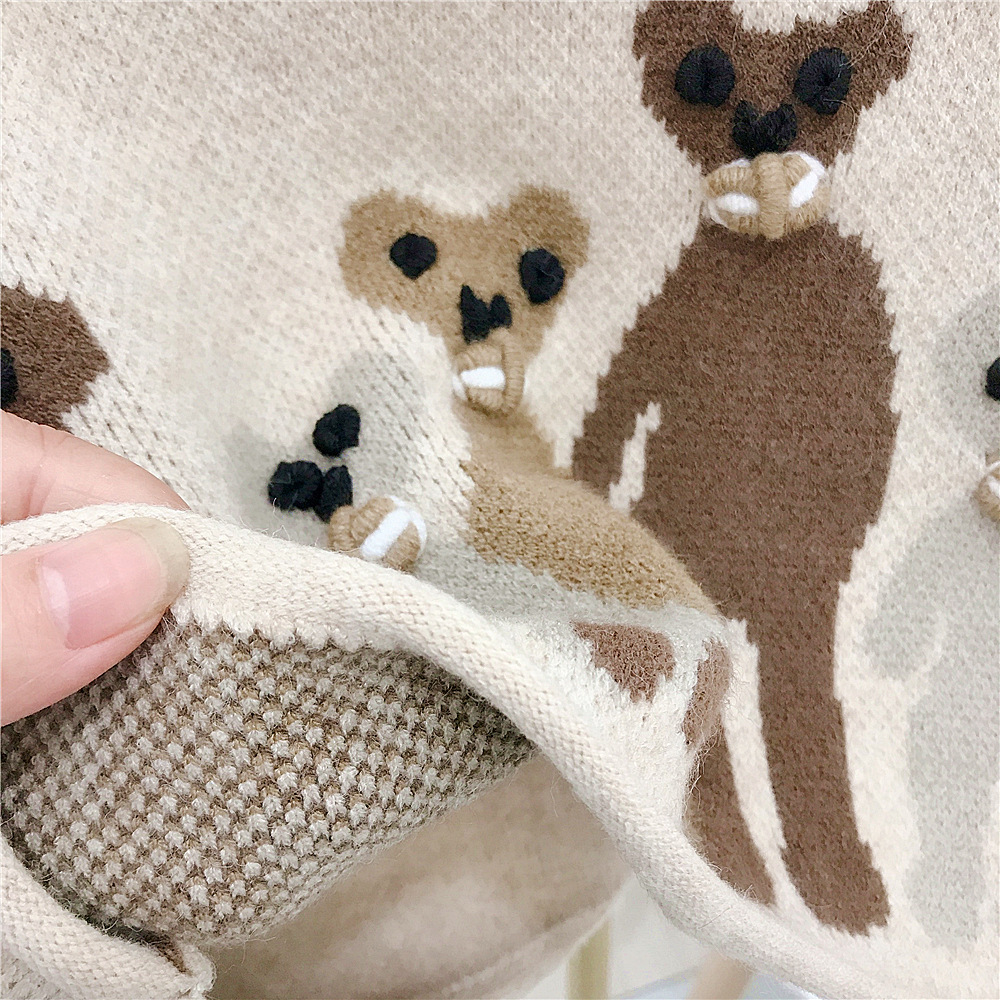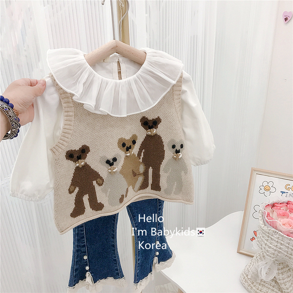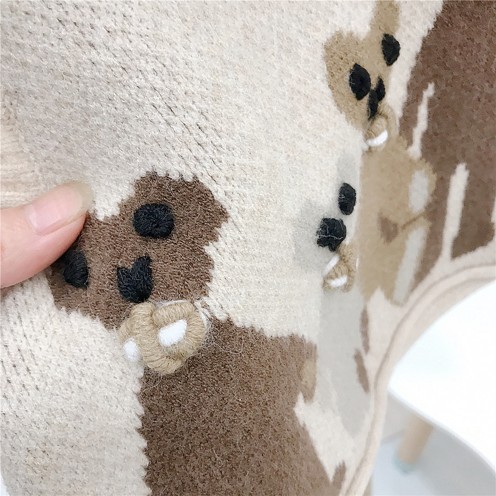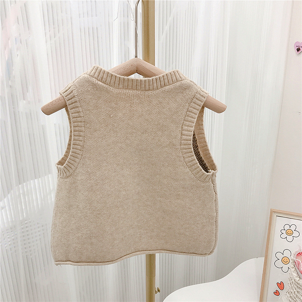 Japanese-style girls' retro school-style knitted sweater vest, cool and cute bear vest for autumn and winter, baby girl vest