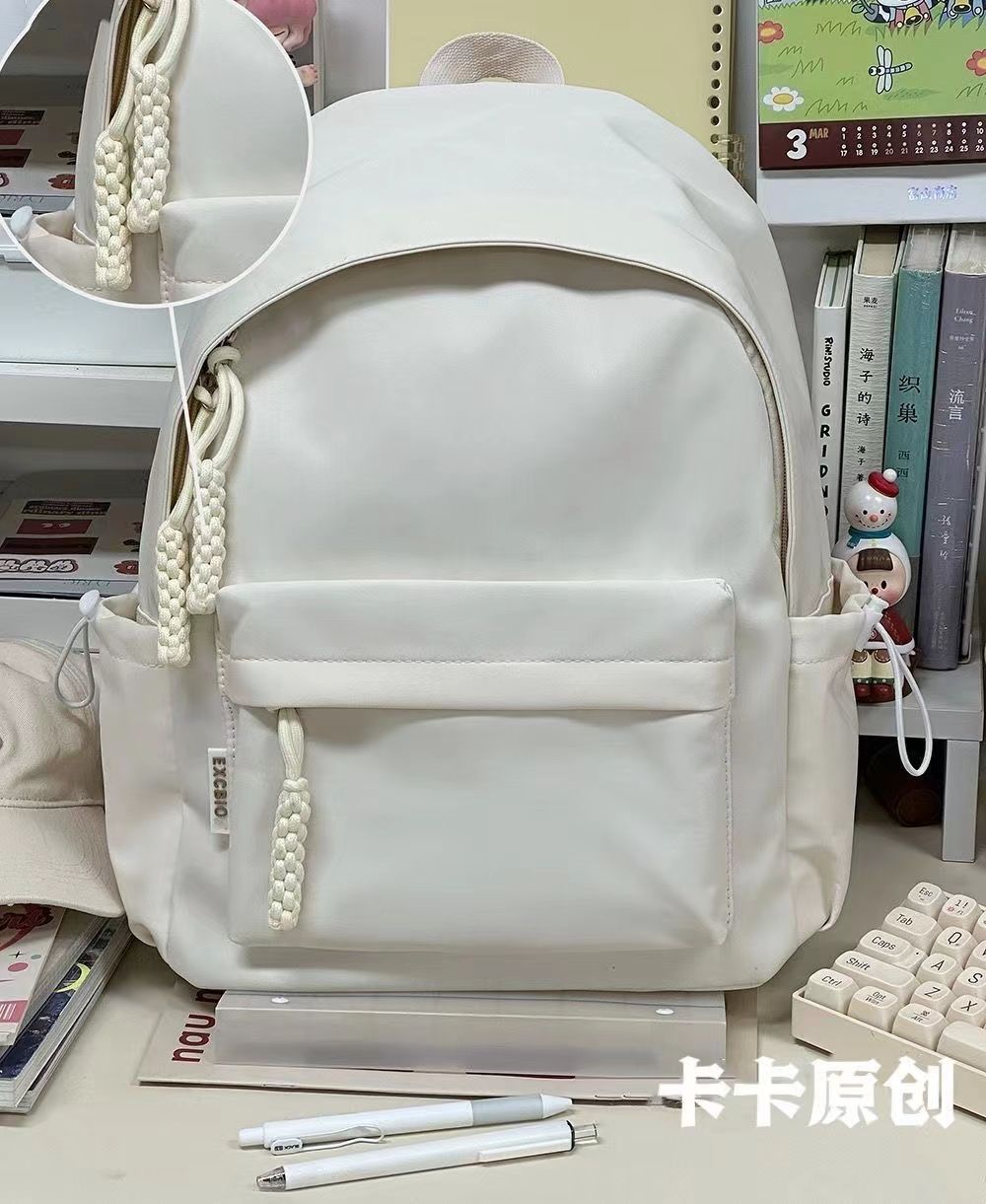 Japanese-style ins campus casual solid-color schoolbag, simple and versatile, lightweight backpack, high school and college student backpack, beige