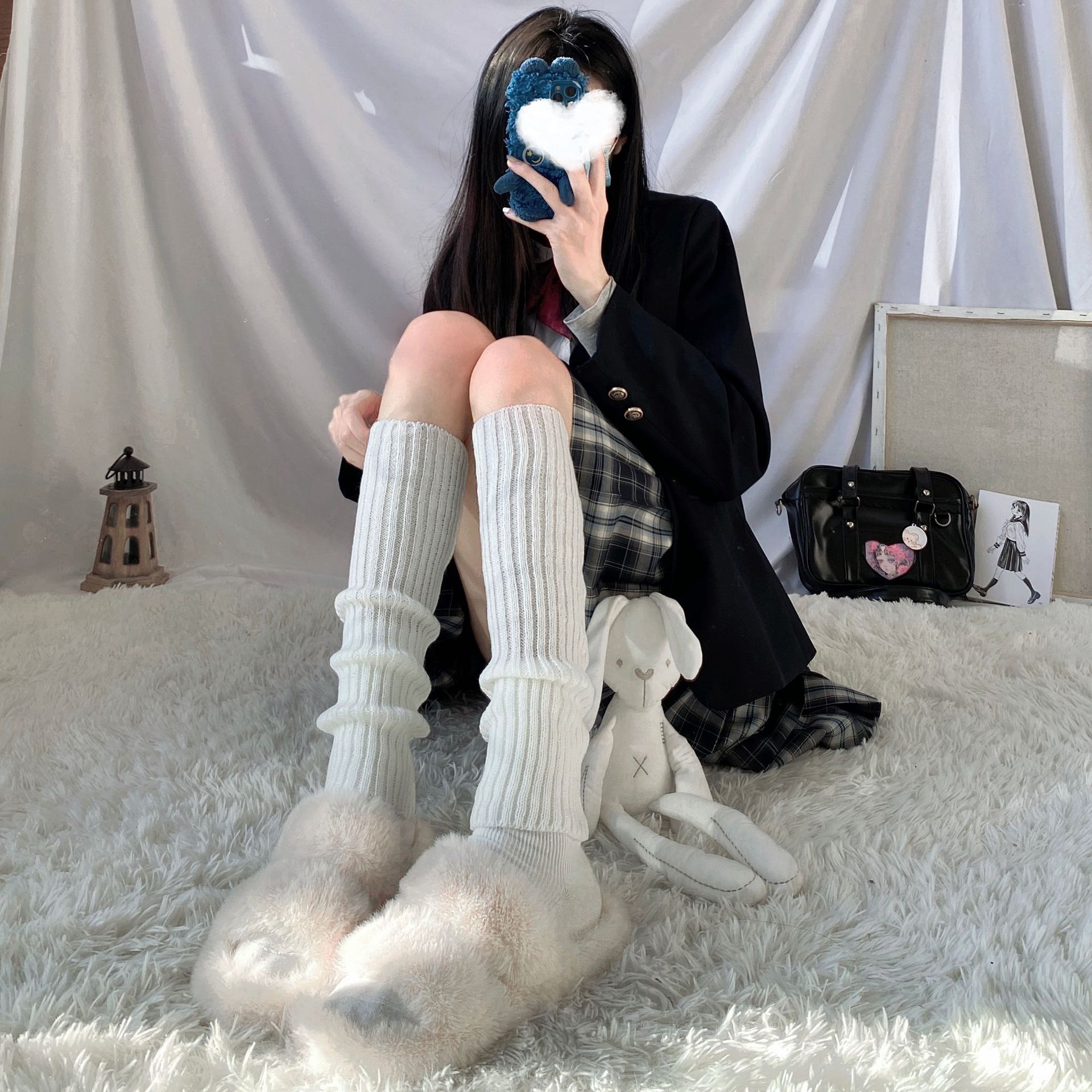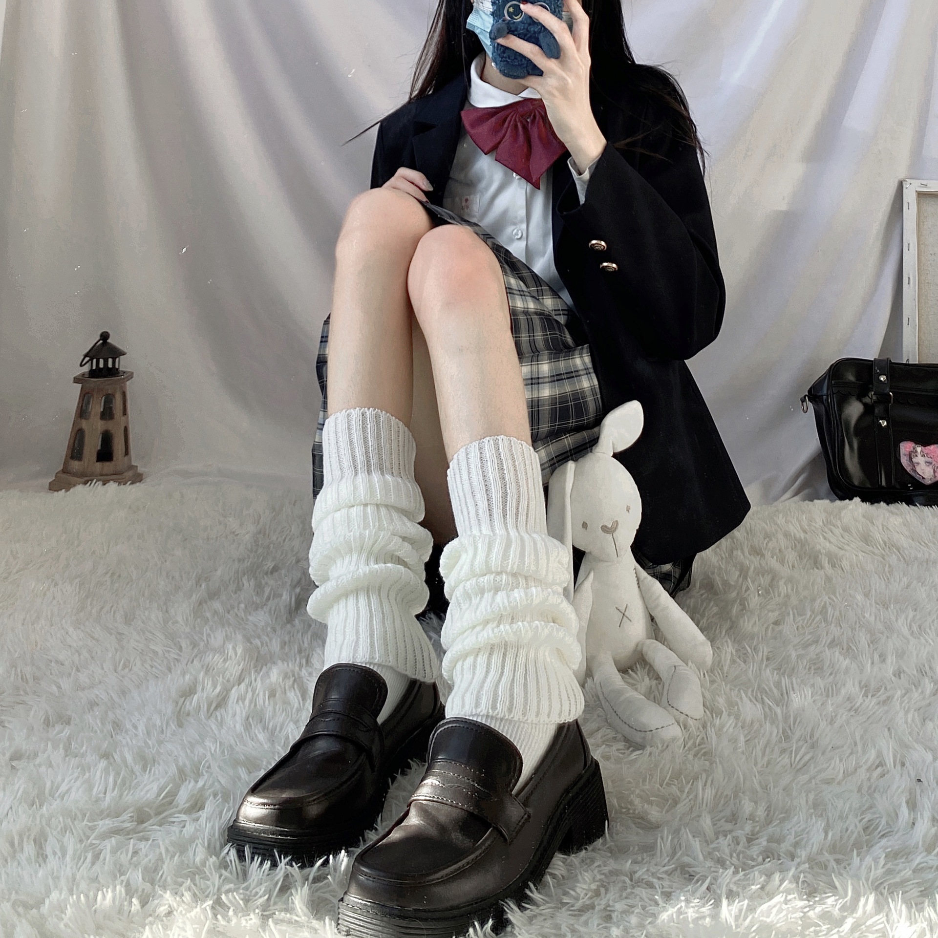 Japanese-style lolita solid-color striped hosiery for women's autumn and winter warmth and leg protection, cute and soft Lolita mid-calf socks