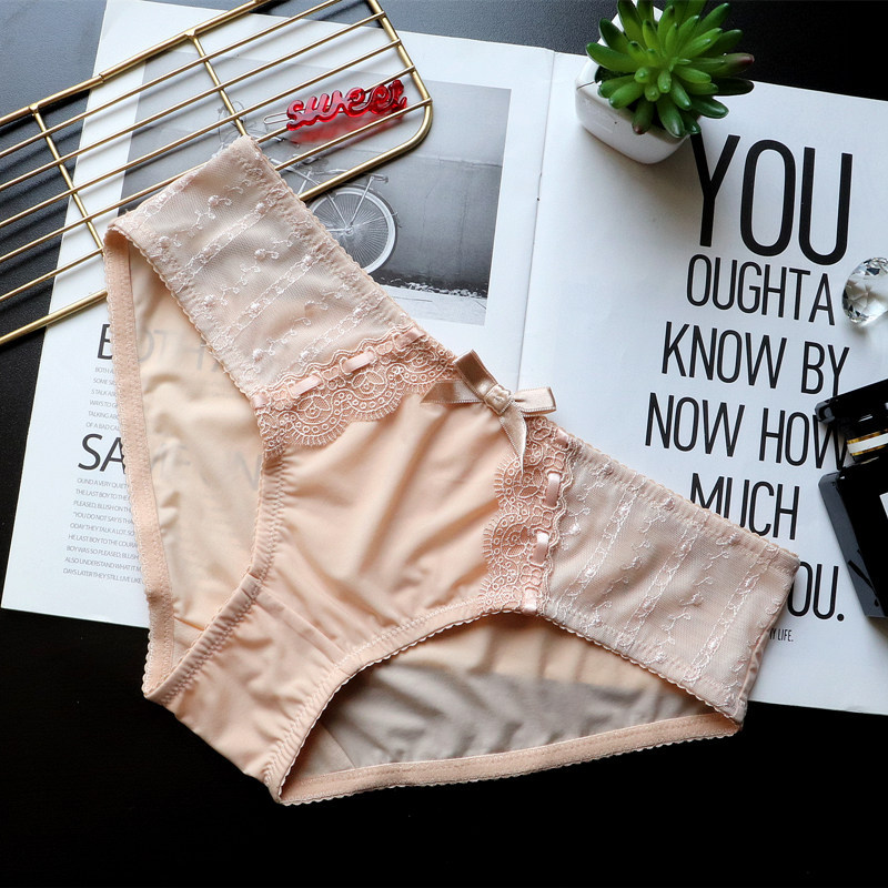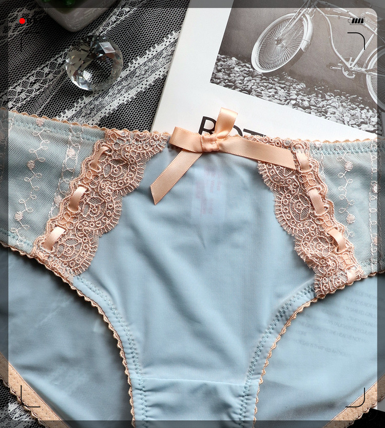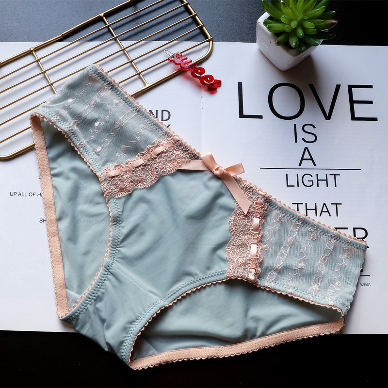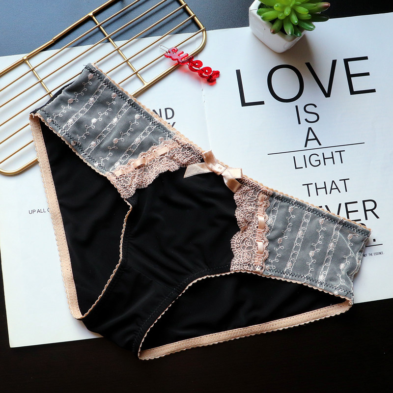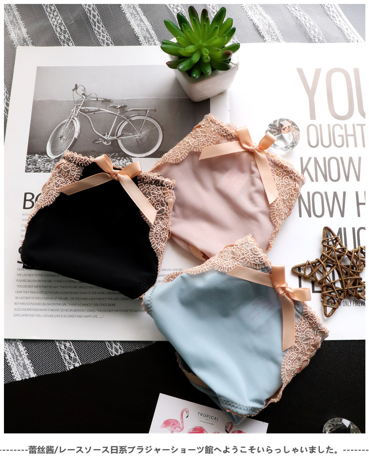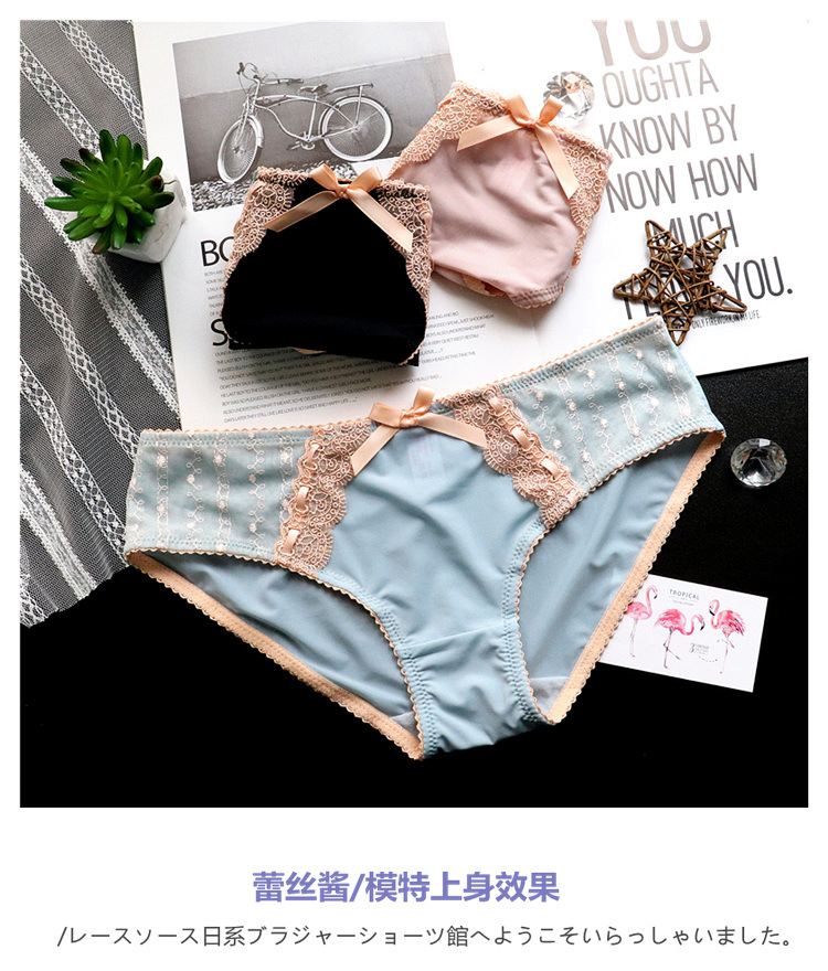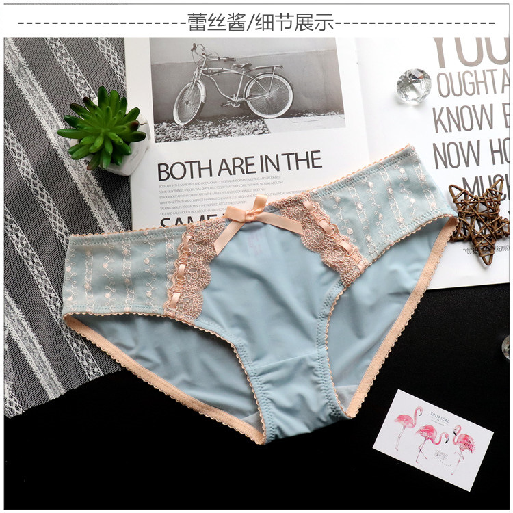 Japanese-style retro embroidered lace cute large-sized women's low-waisted underwear, women's hip-lifting ice silk breathable women's triangle pants