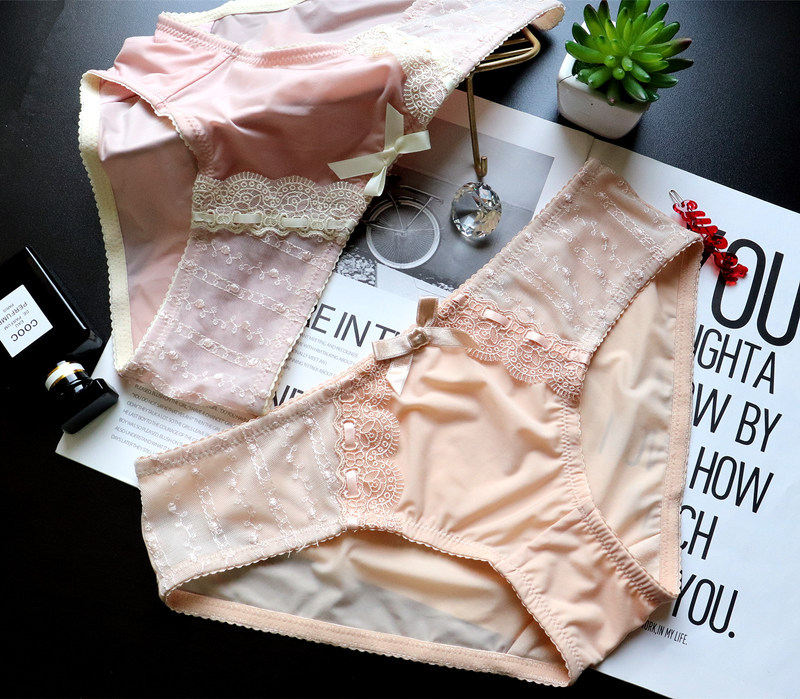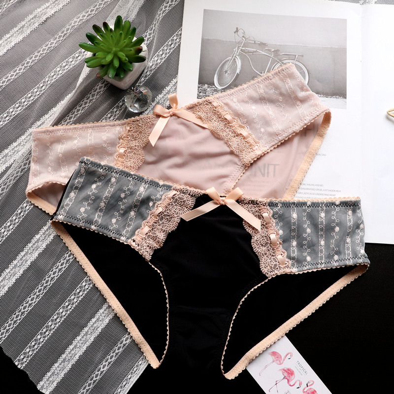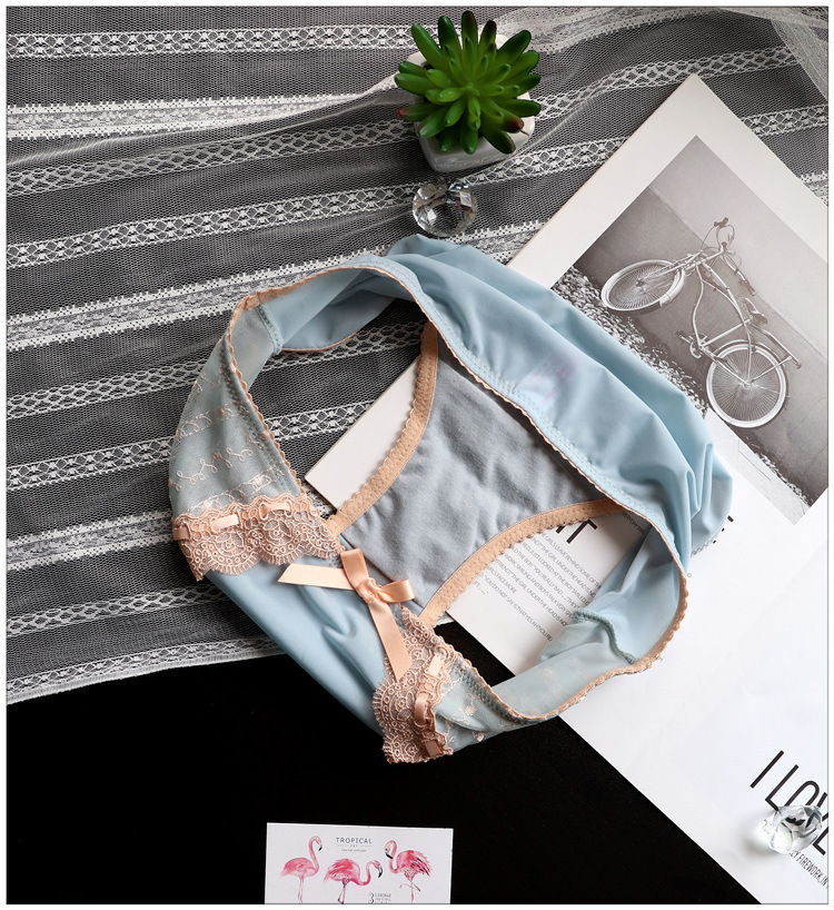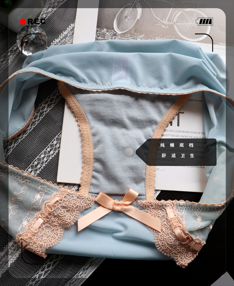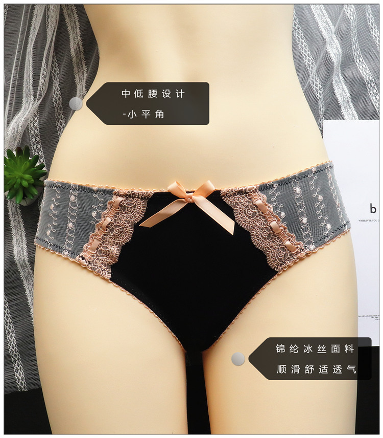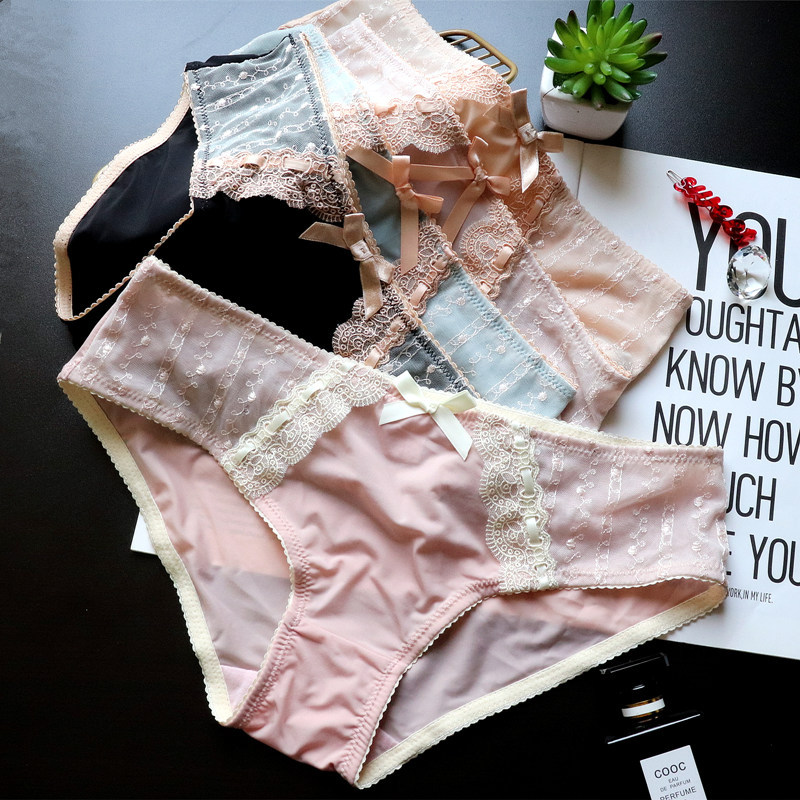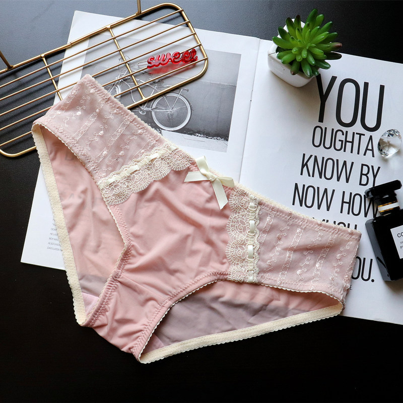 Japanese-style retro embroidered lace cute large-sized women's low-waisted underwear, women's hip-lifting ice silk breathable women's triangle pants