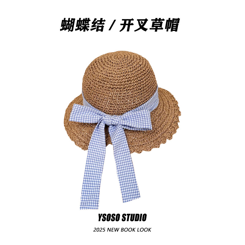 Japanese-style sweet bow-tied straw hats for women's summer seaside vacation and outings, sun hats and sun-protective straw woven hats are in trend