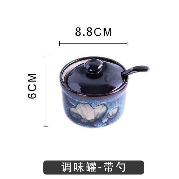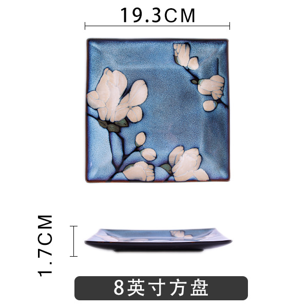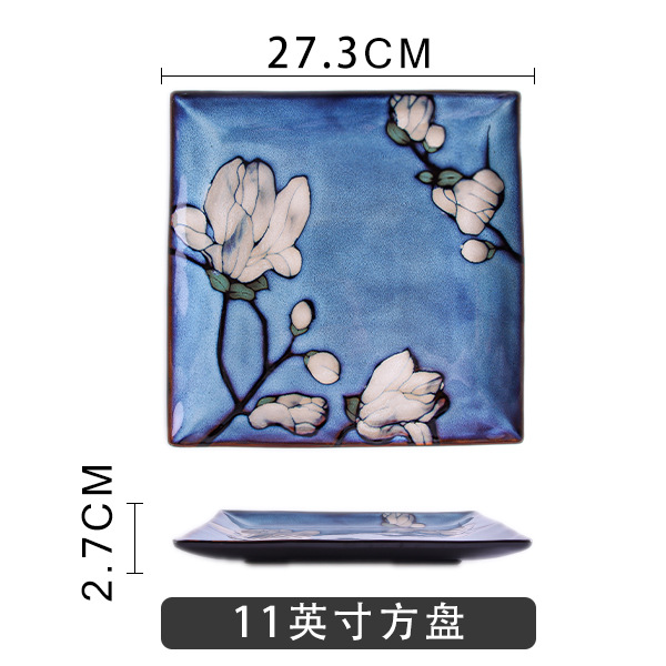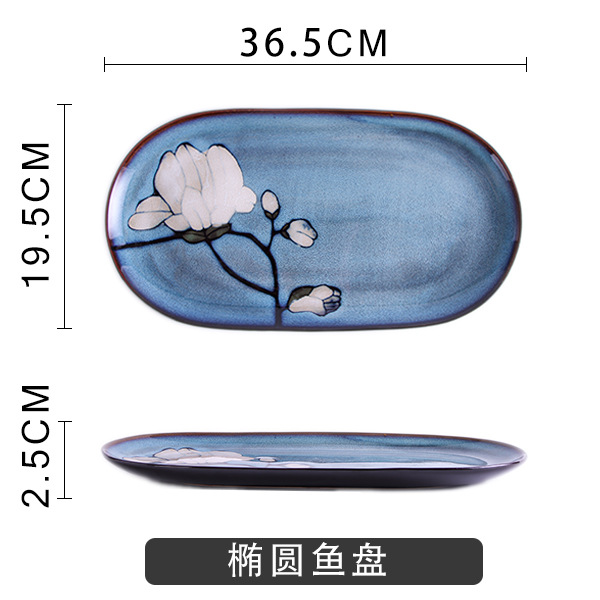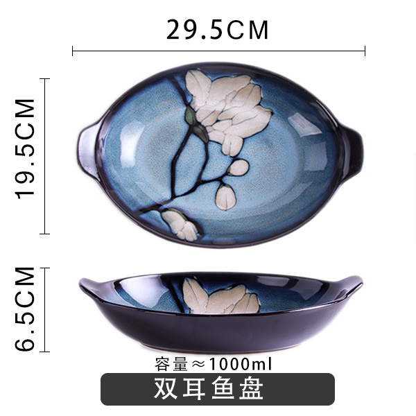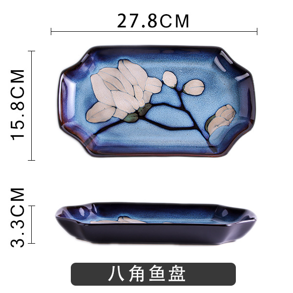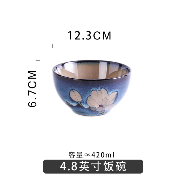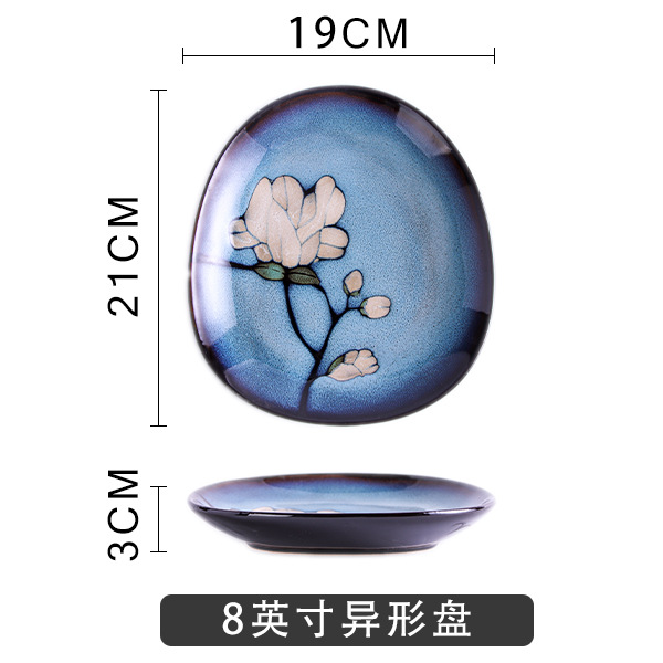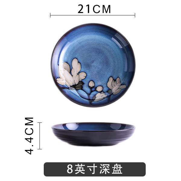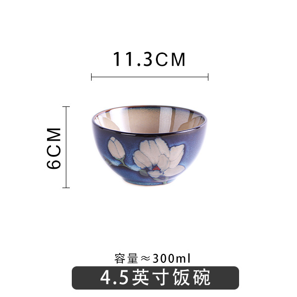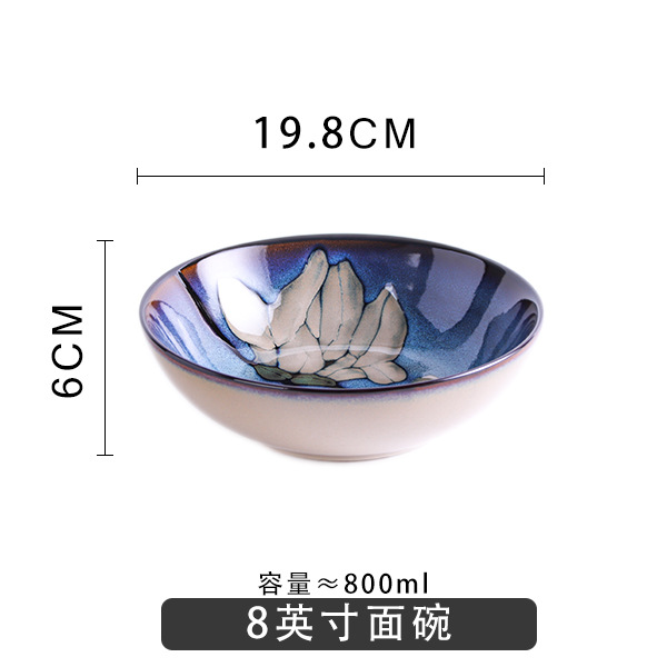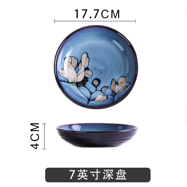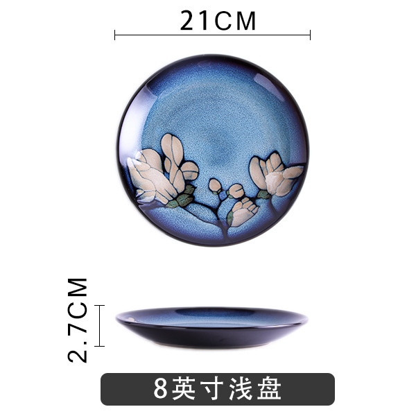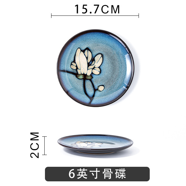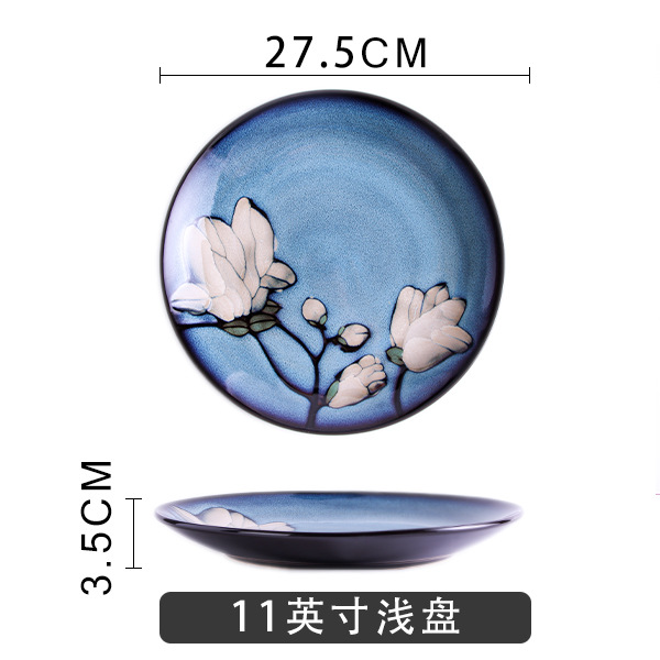 Japanese-style tableware, kiln transformation underglaze color magnolia flower hand-painted plate set, fish plate, household plate, rice bowl, creative noodle bowl