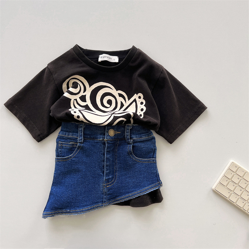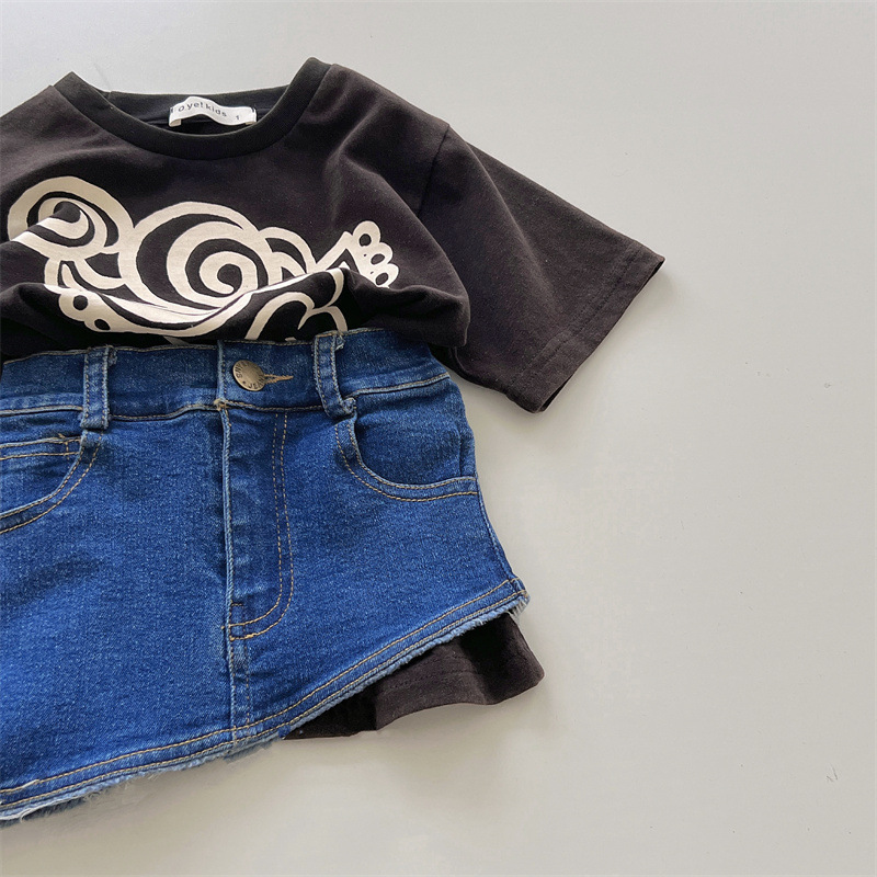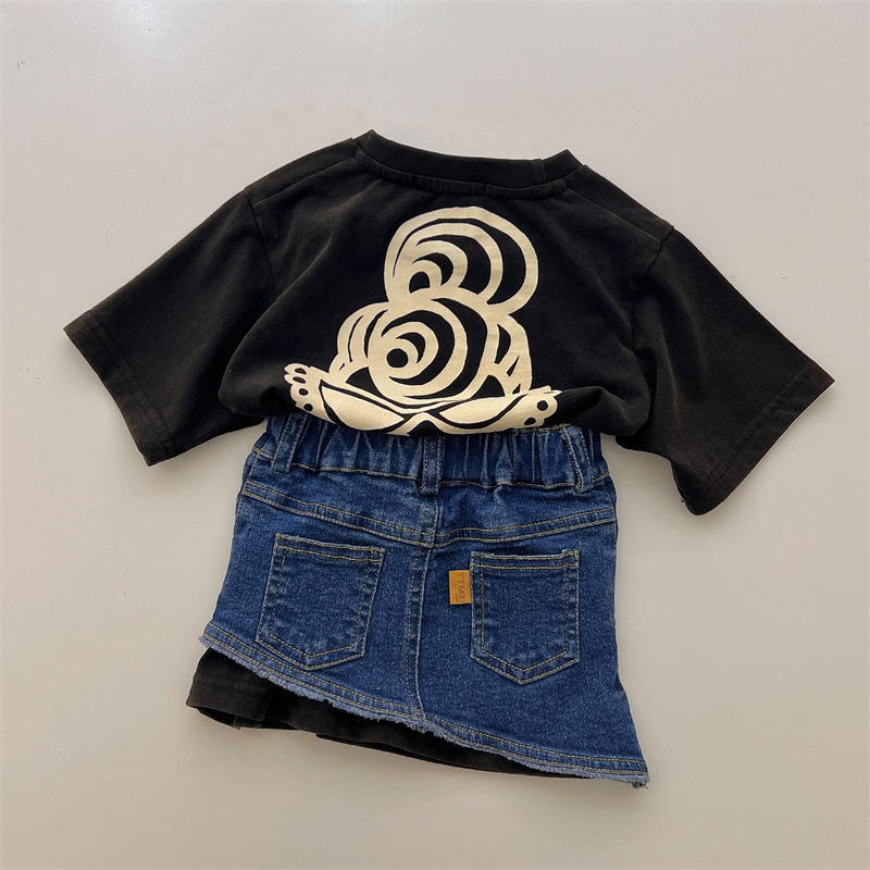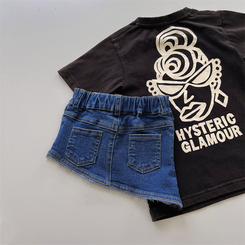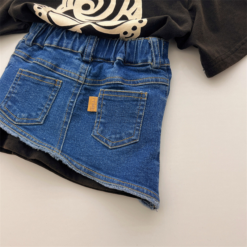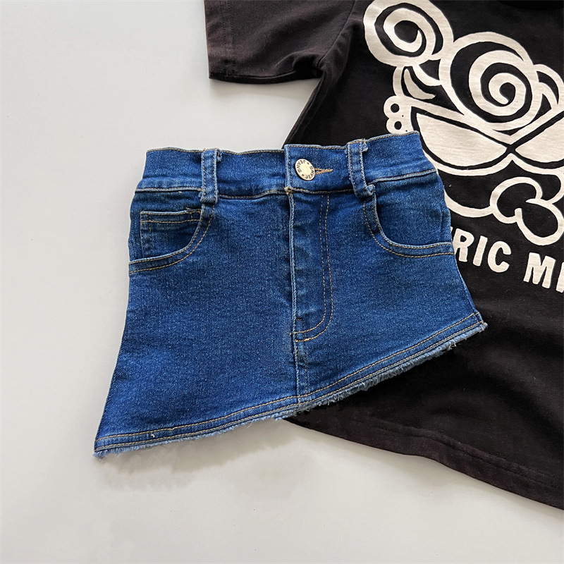 Japanese-style trendy kids vintage pacifier Superman long T girls' denim skirt, high-end children's summer denim skirt