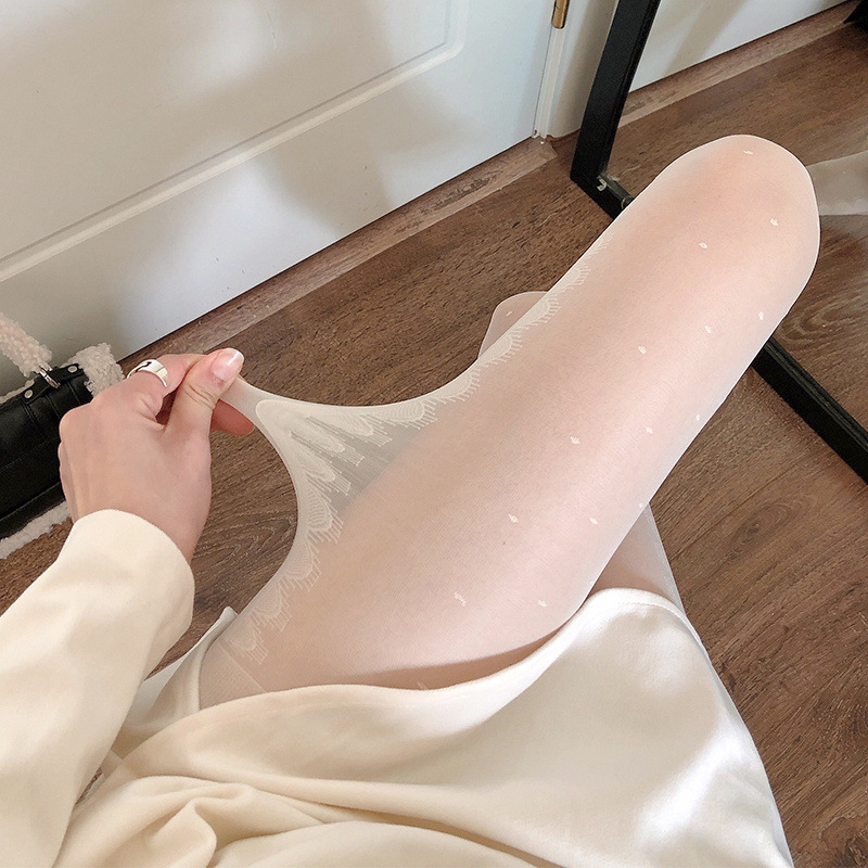 Japanese-style white pantyhose for spring and autumn, thin jk cream-colored jacquard stockings, sexy black silk base stockings, women's hosiery