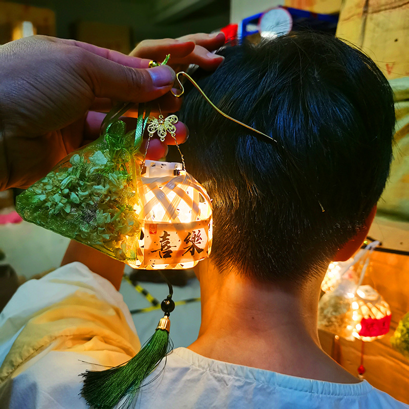 One green (mixed characters) black hairpin + 6*6 bamboo lantern with ribbon