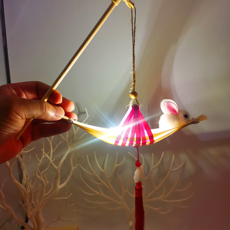 One 6.6cm bamboo round lantern made of pink (mixed characters) flowers and rabbit wooden poles