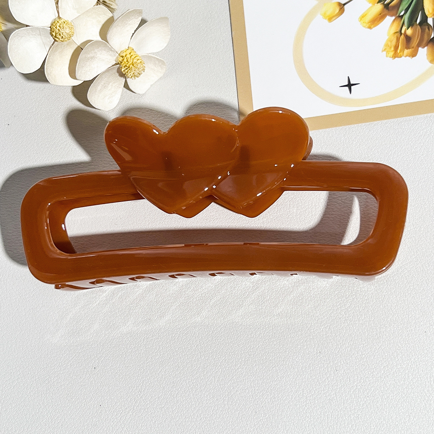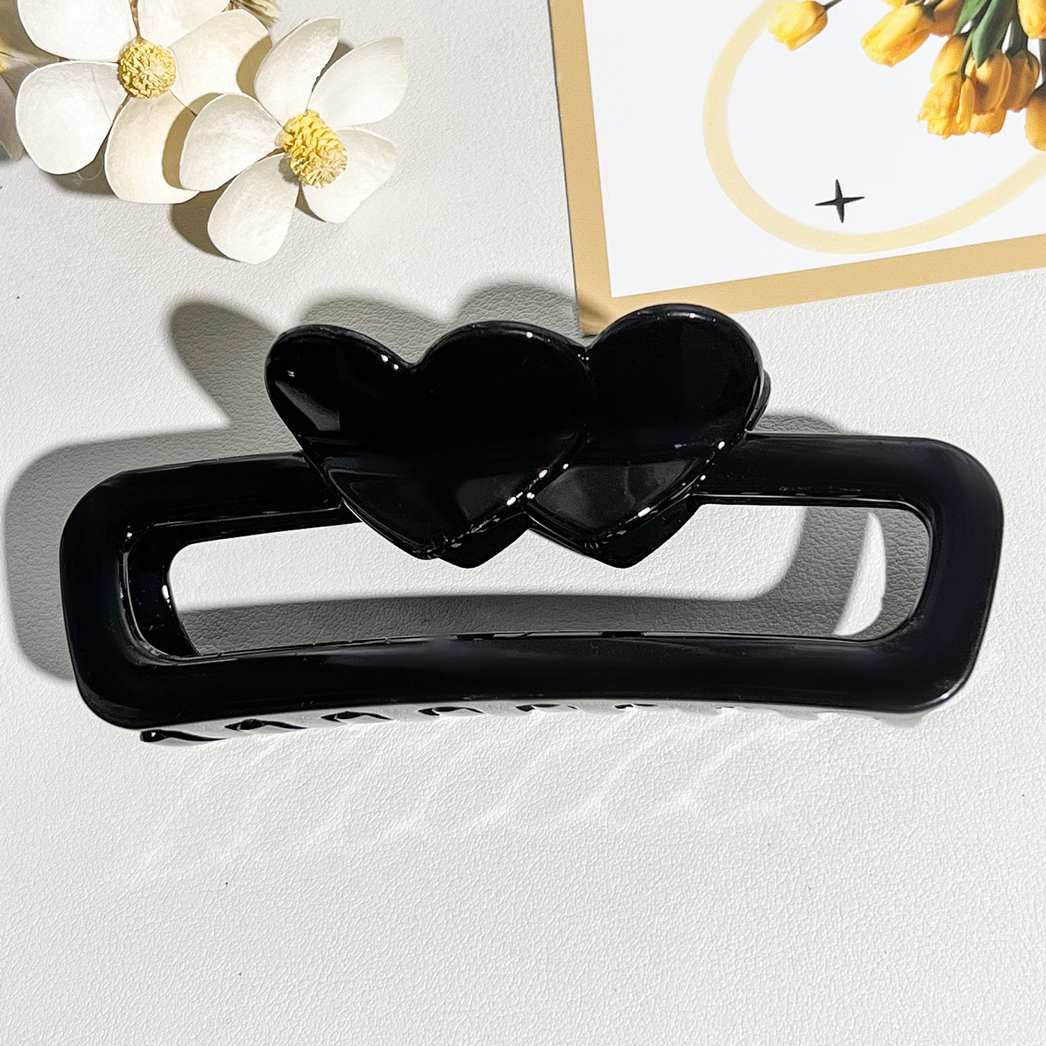 Jelly-colored hollowed-out rectangular large double heart claw, shark clip, headpiece, hair clip, back of the head accessory, hair accessory