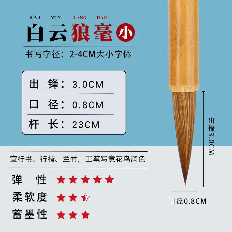 Jiajian Da Baiyun Brush Small Size Chinese Painting Brush Calligraphy Set for Beginners, Four Treasures of the Study Wolf-Hair Brush with Both Brush and Brush
