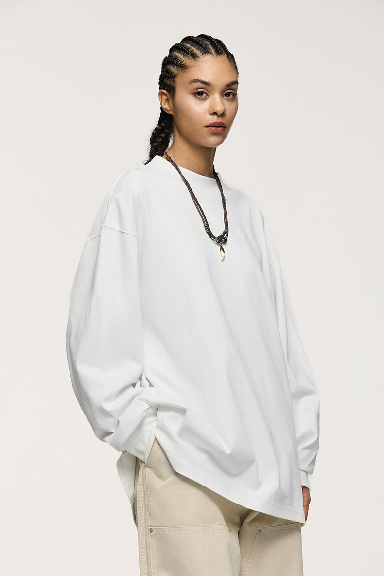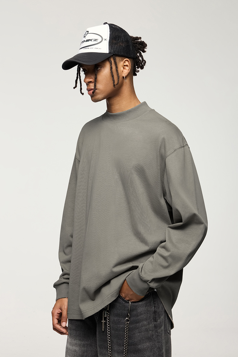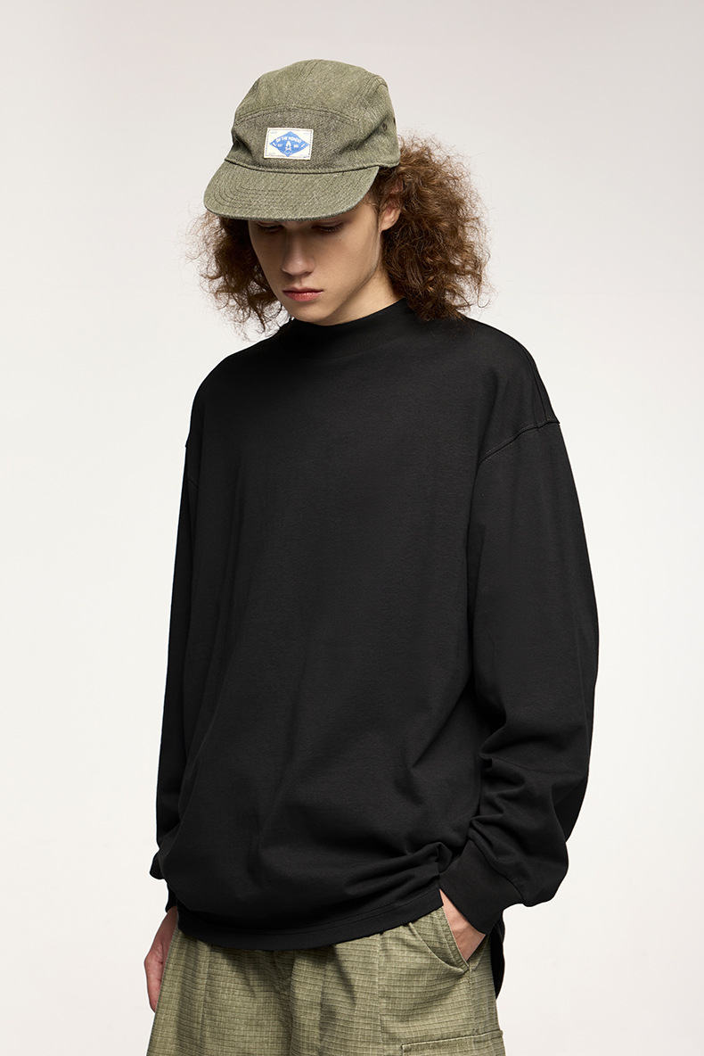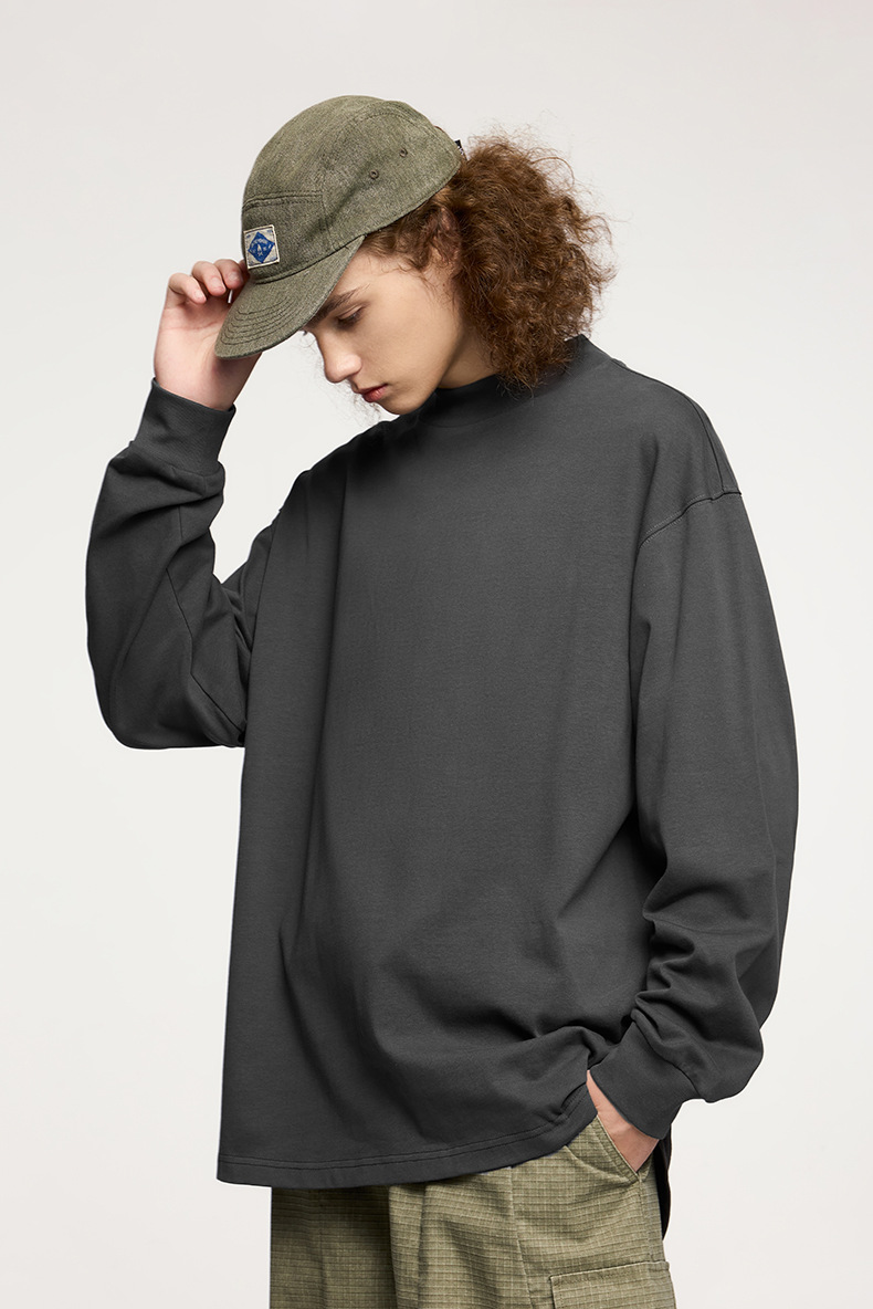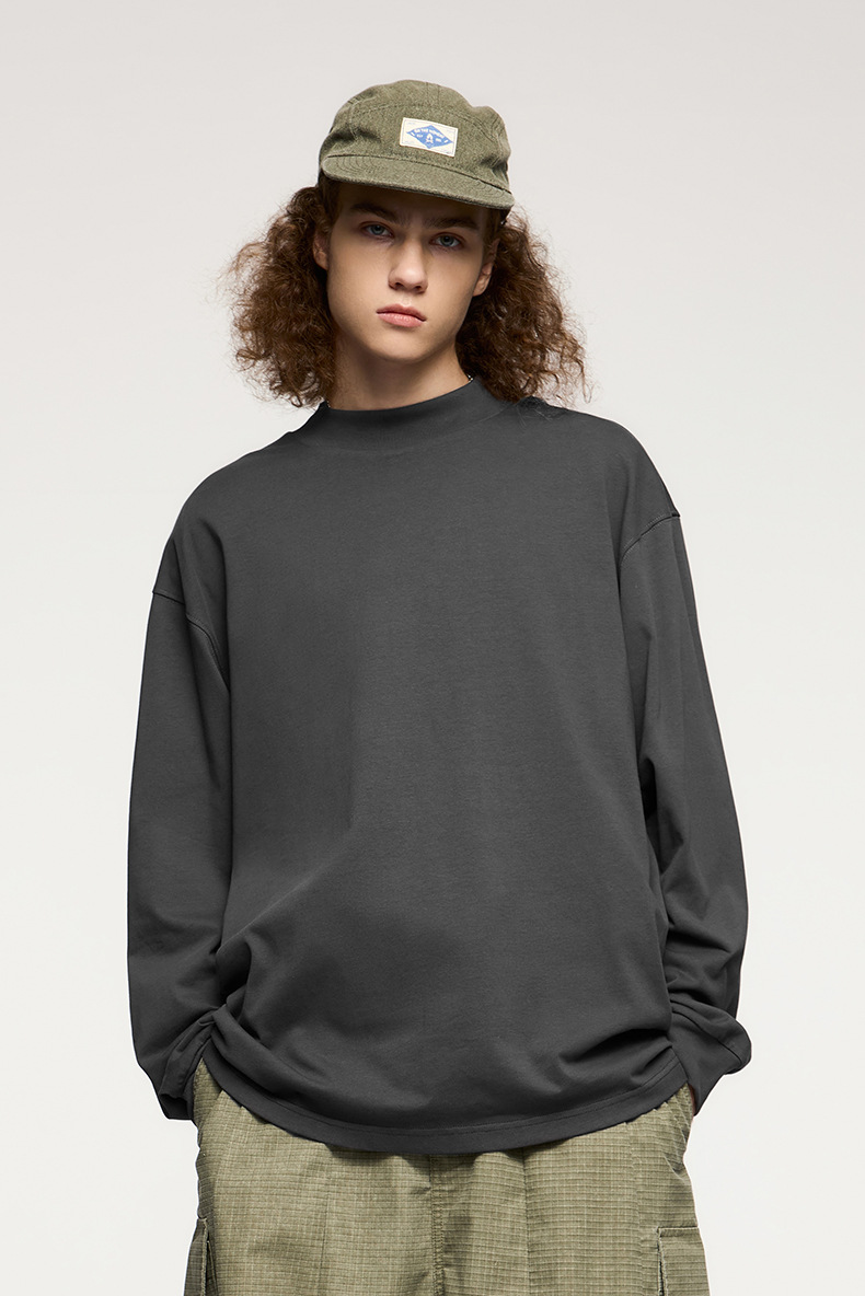 Jiezhan Men's Wear: 26S Heavyweight Small high-neck Long T2025 Spring New Collection American Basic Base T-shirt with loose long sleeves