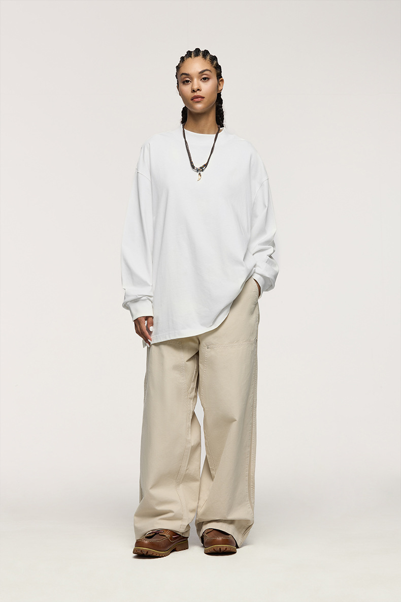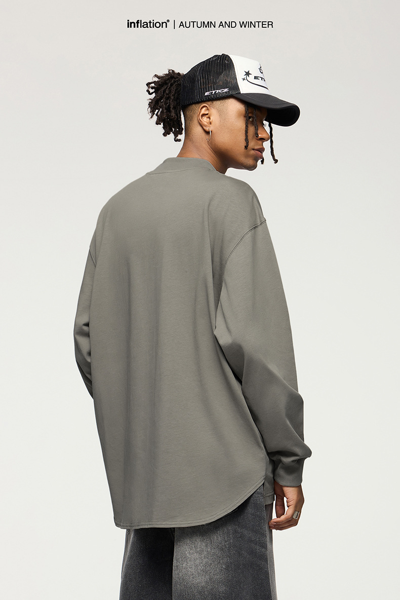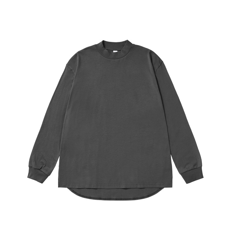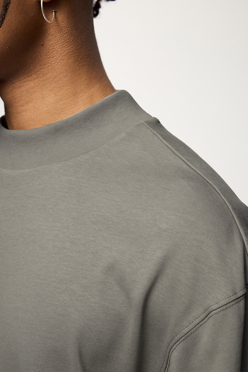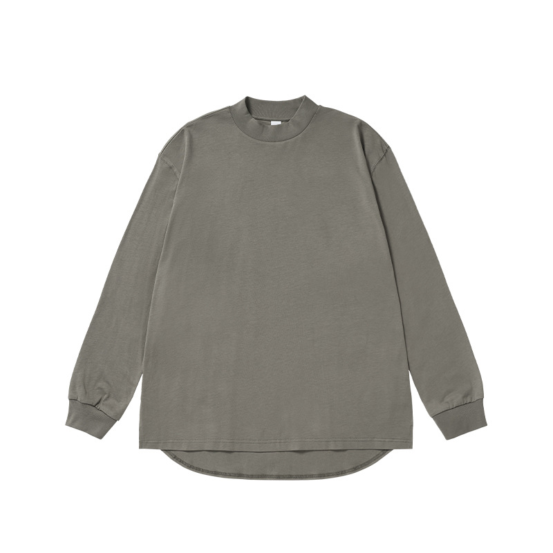Jiezhan Men's Wear: 26S Heavyweight Small high-neck Long T2025 Spring New Collection American Basic Base T-shirt with loose long sleeves