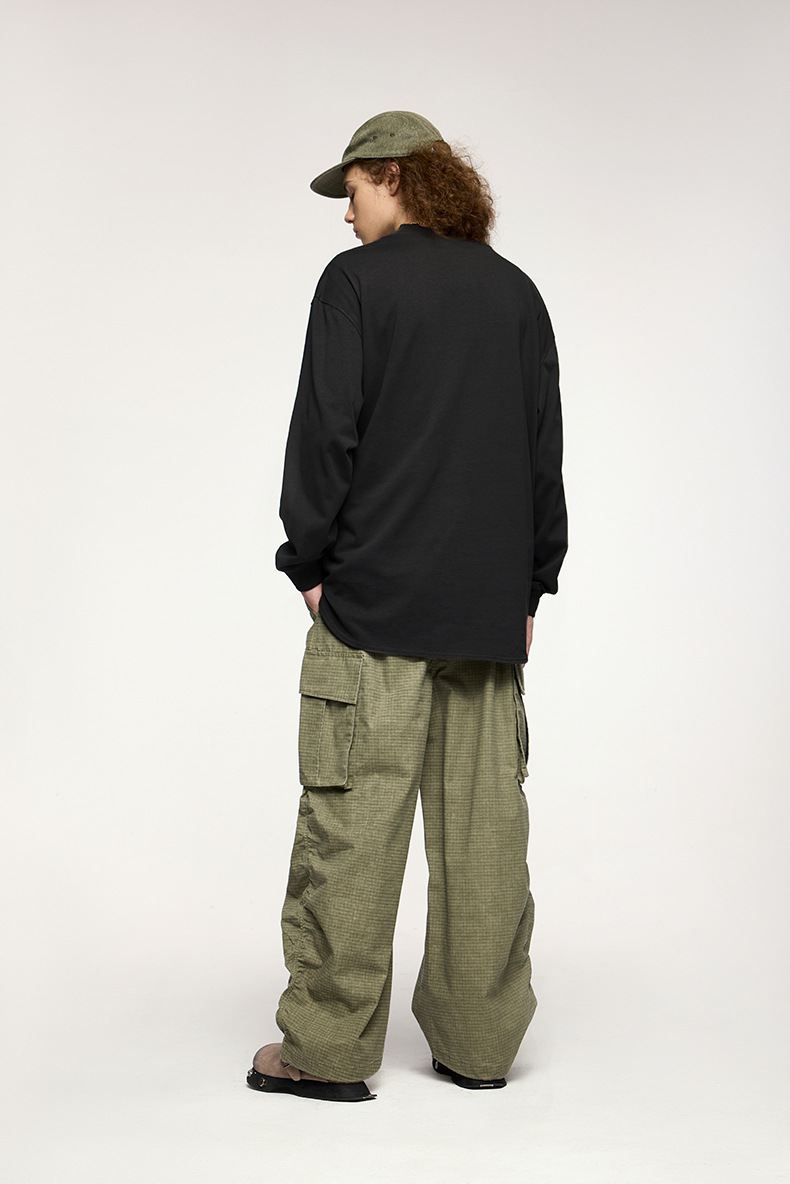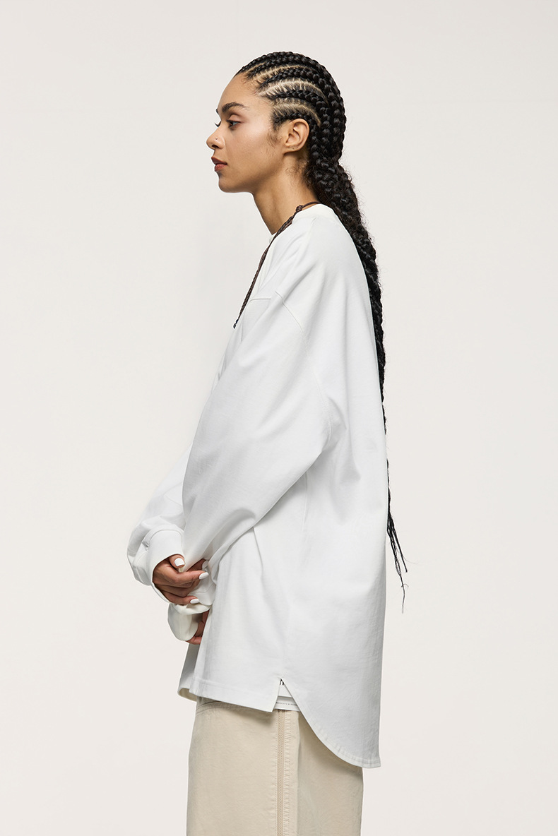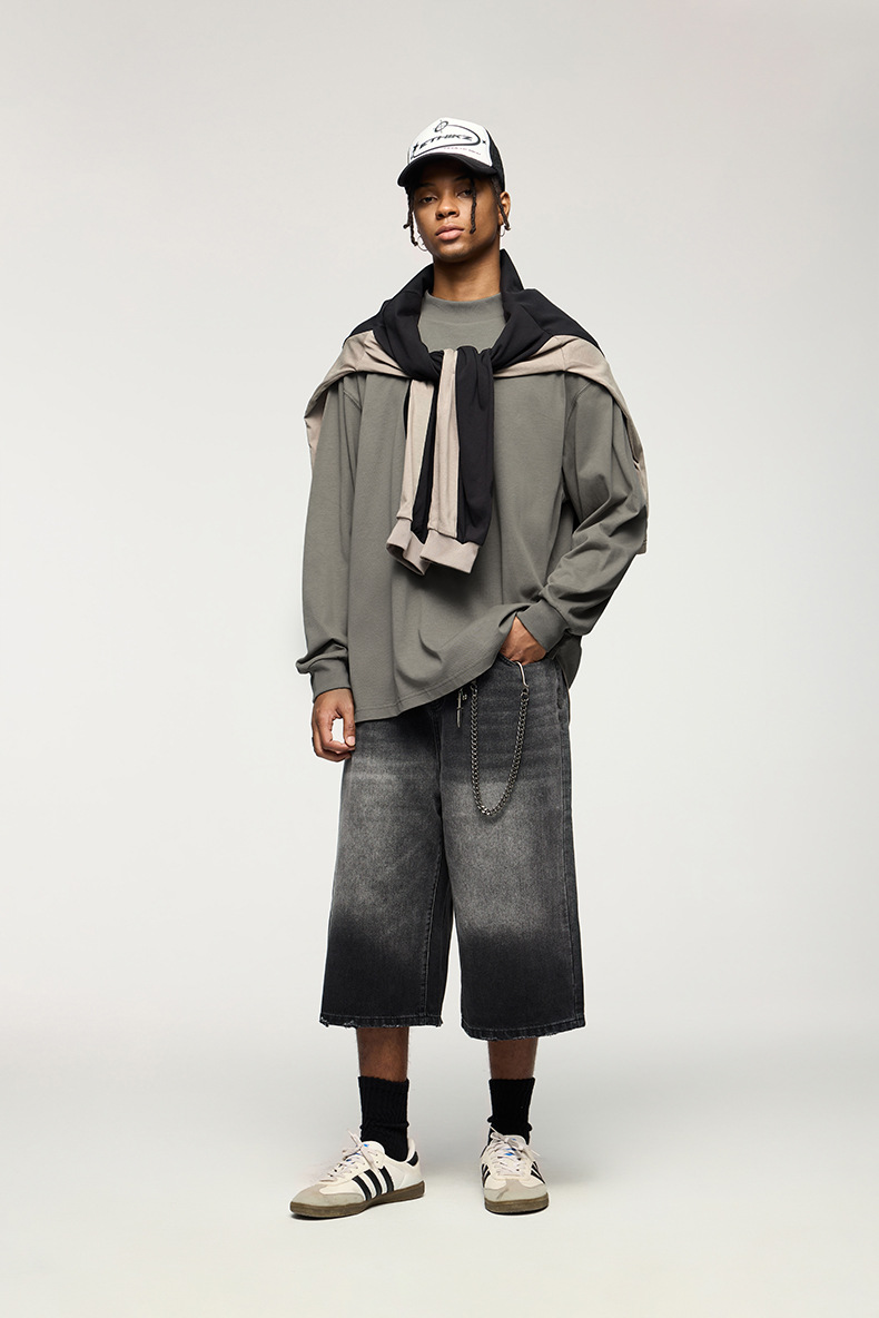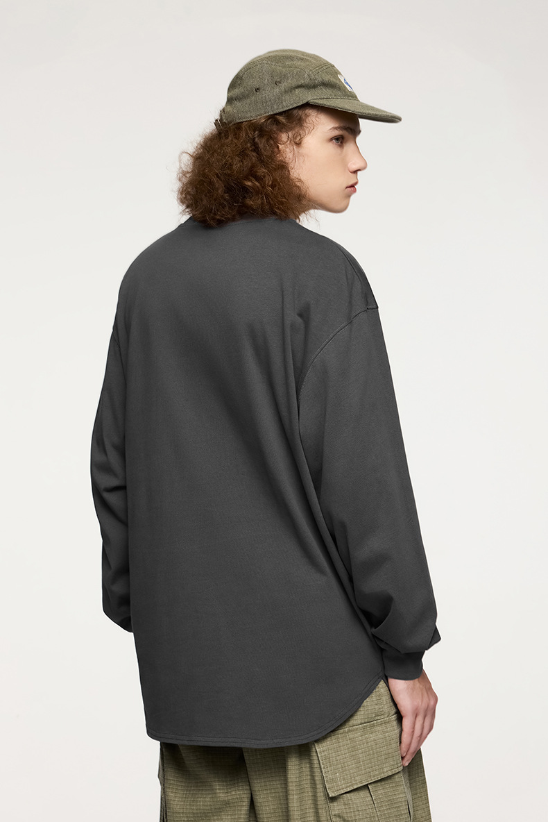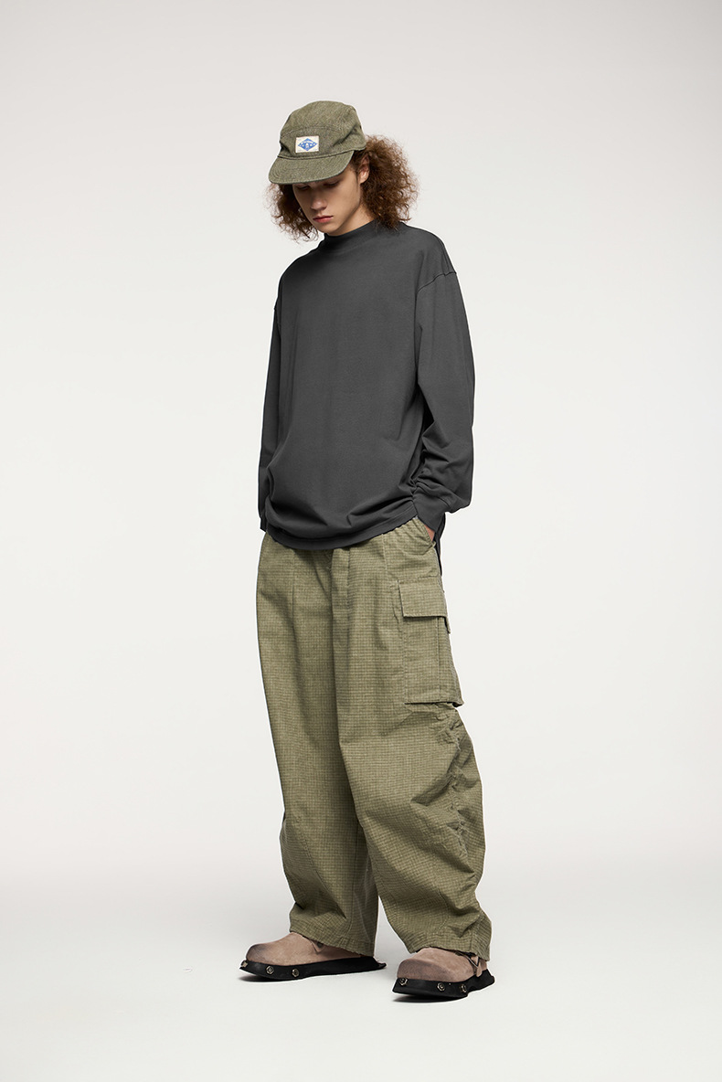 Jiezhan Men's Wear: 26S Heavyweight Small high-neck Long T2025 Spring New Collection American Basic Base T-shirt with loose long sleeves