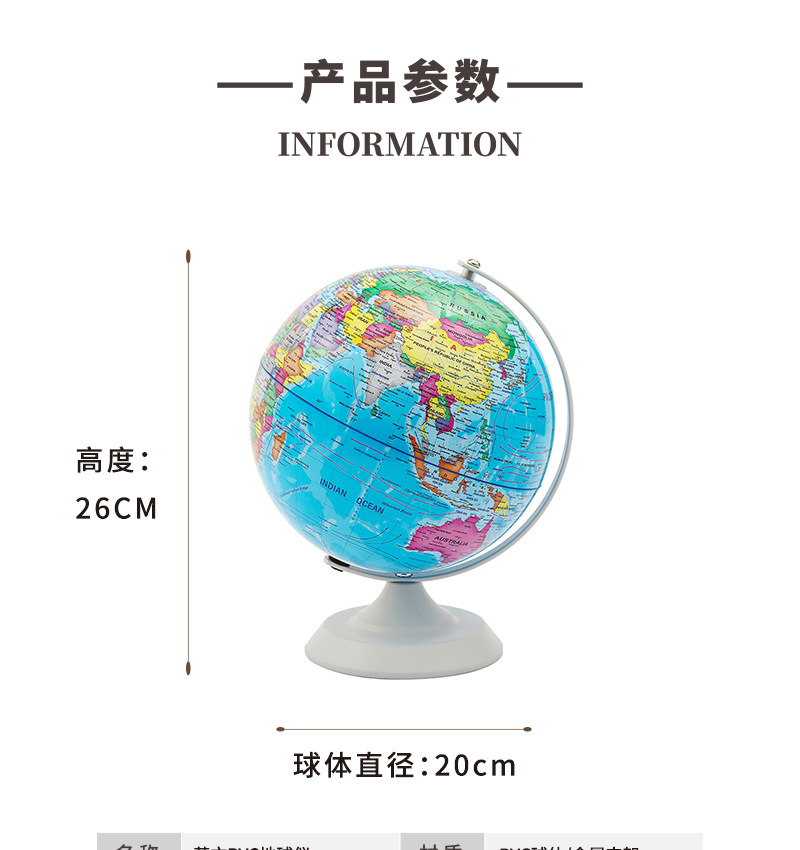 Jingfeng 20cm English Globe Ornament, children's white baking craft Home Decoration, Office high-definition teaching wholesale