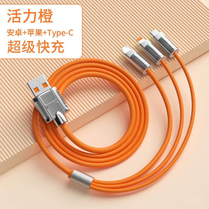 Jinshesheng brand zinc alloy machine customer wire super flexible liquid silicone 1.2-meter super fast charging three-in-one data cable