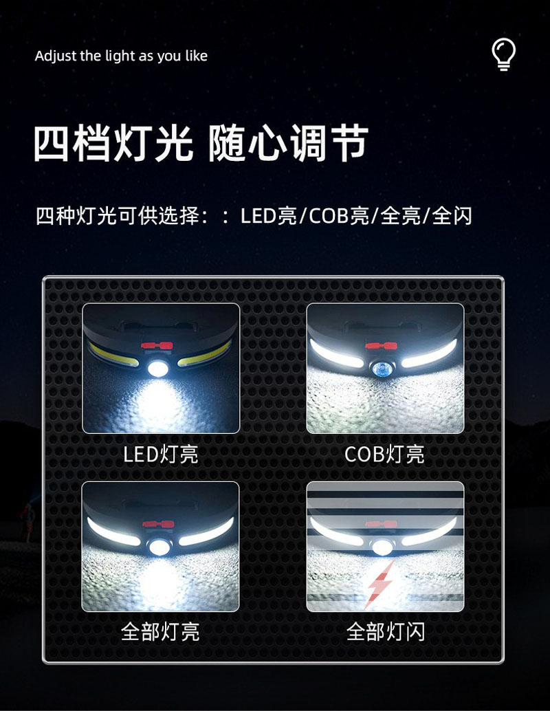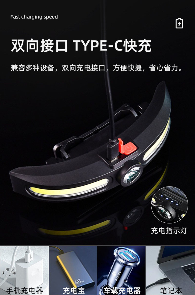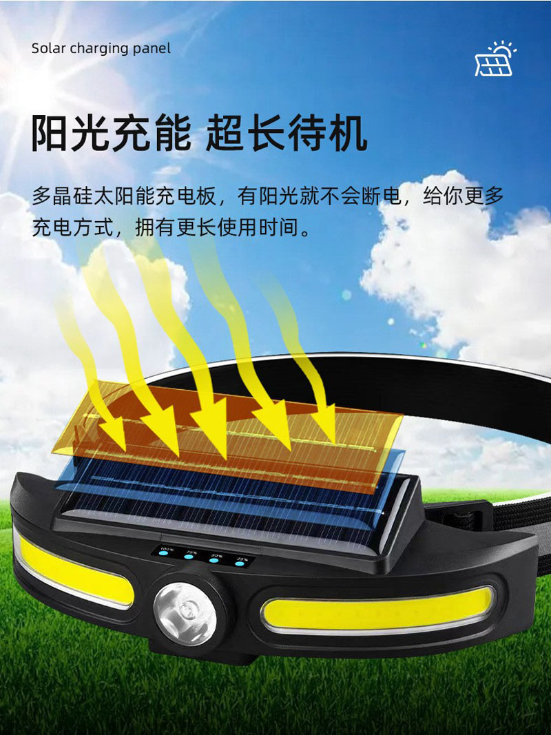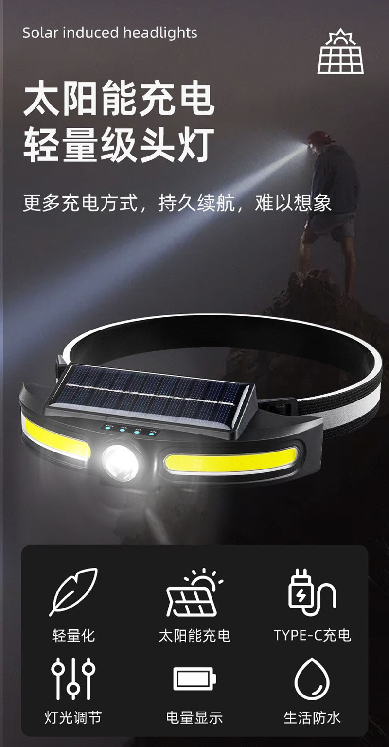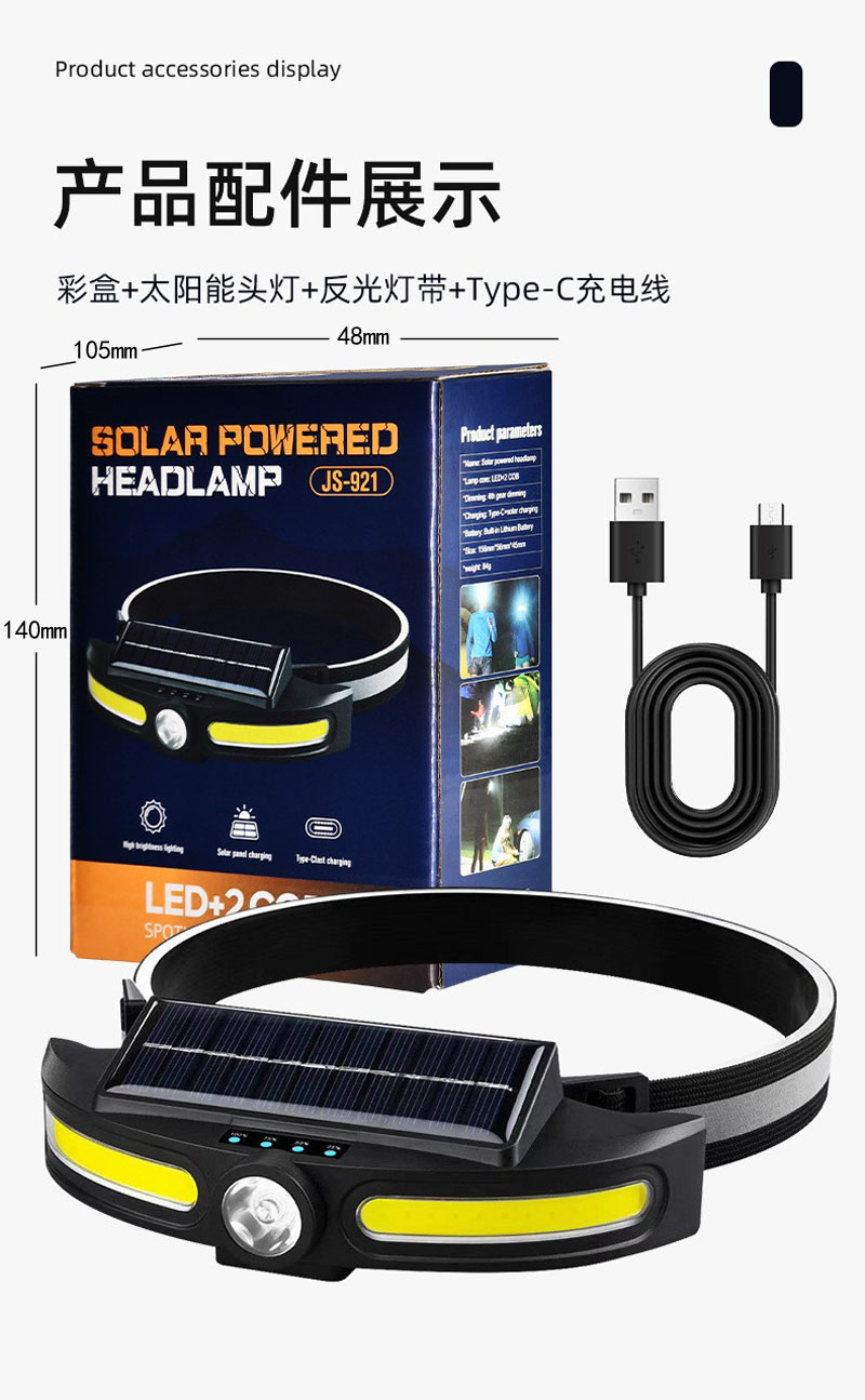 JS-921USB rechargeable solar headlamp, COB headlamp, lightweight LED floodlight, outdoor camping head-mounted high-intensity plastic headlamp, miner's lamp