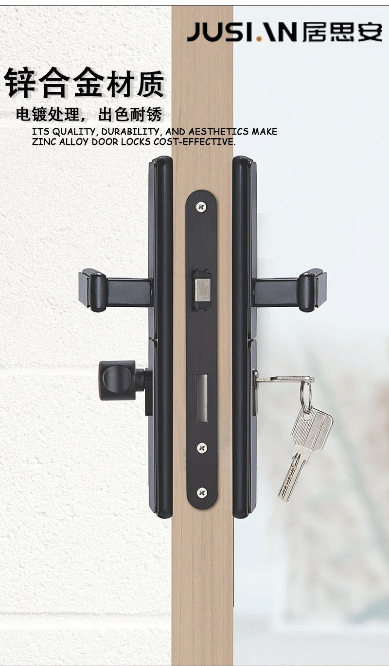 Jusi 'an indoor bedroom, study and bathroom universal integrated mechanical door lock zinc alloy silent magnetic door handle