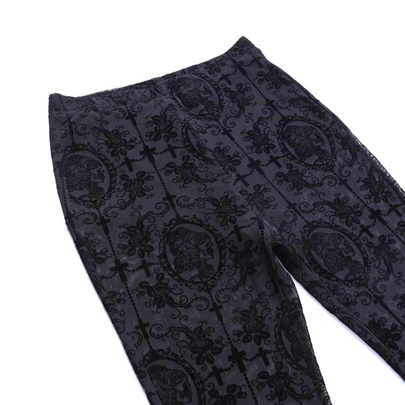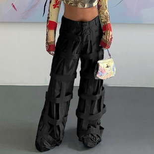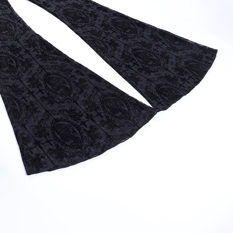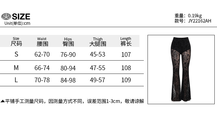 JY22162 Amazon Women's Trousers 2023 Summer New Lace see-through sexy high-waisted slim flared pants