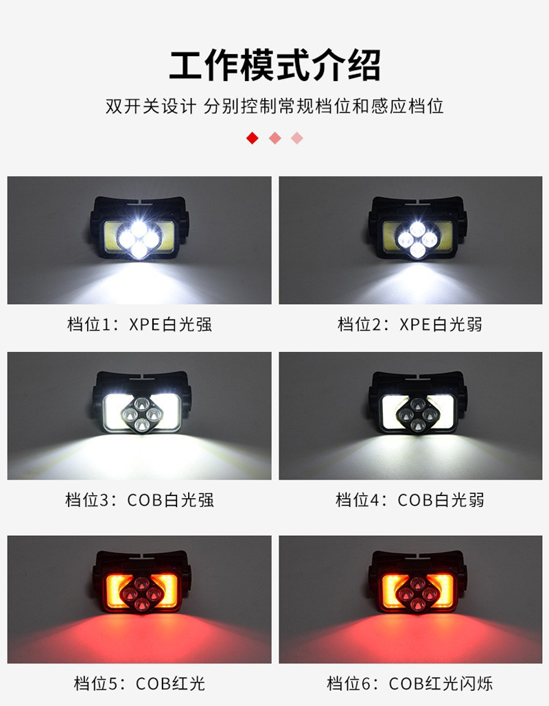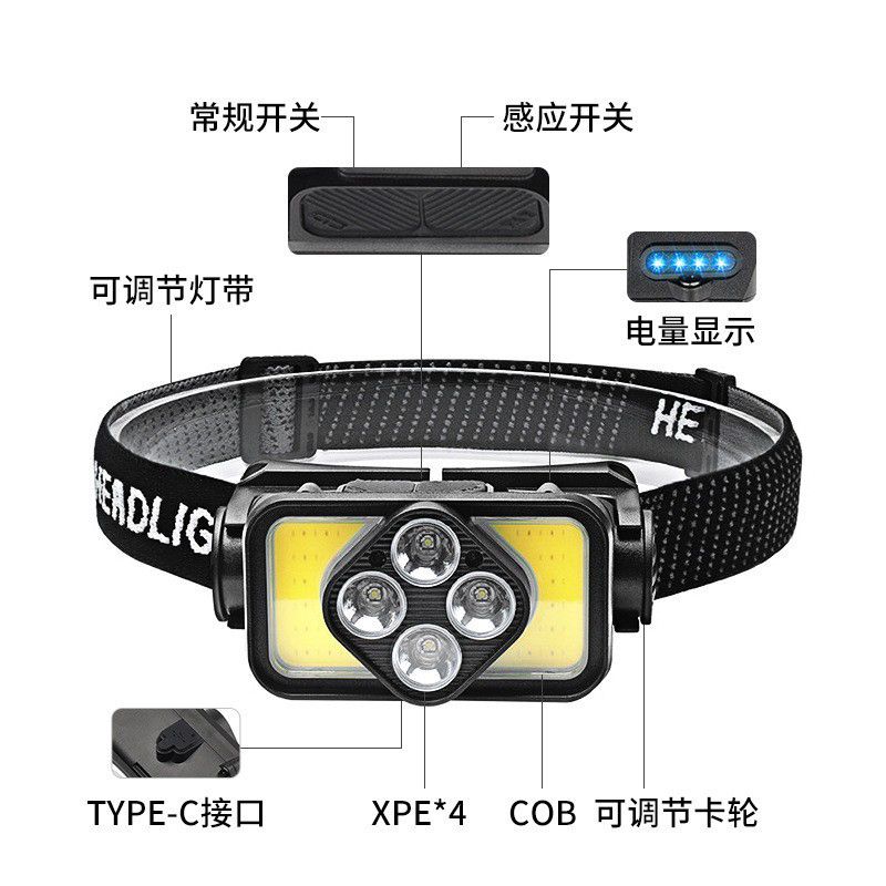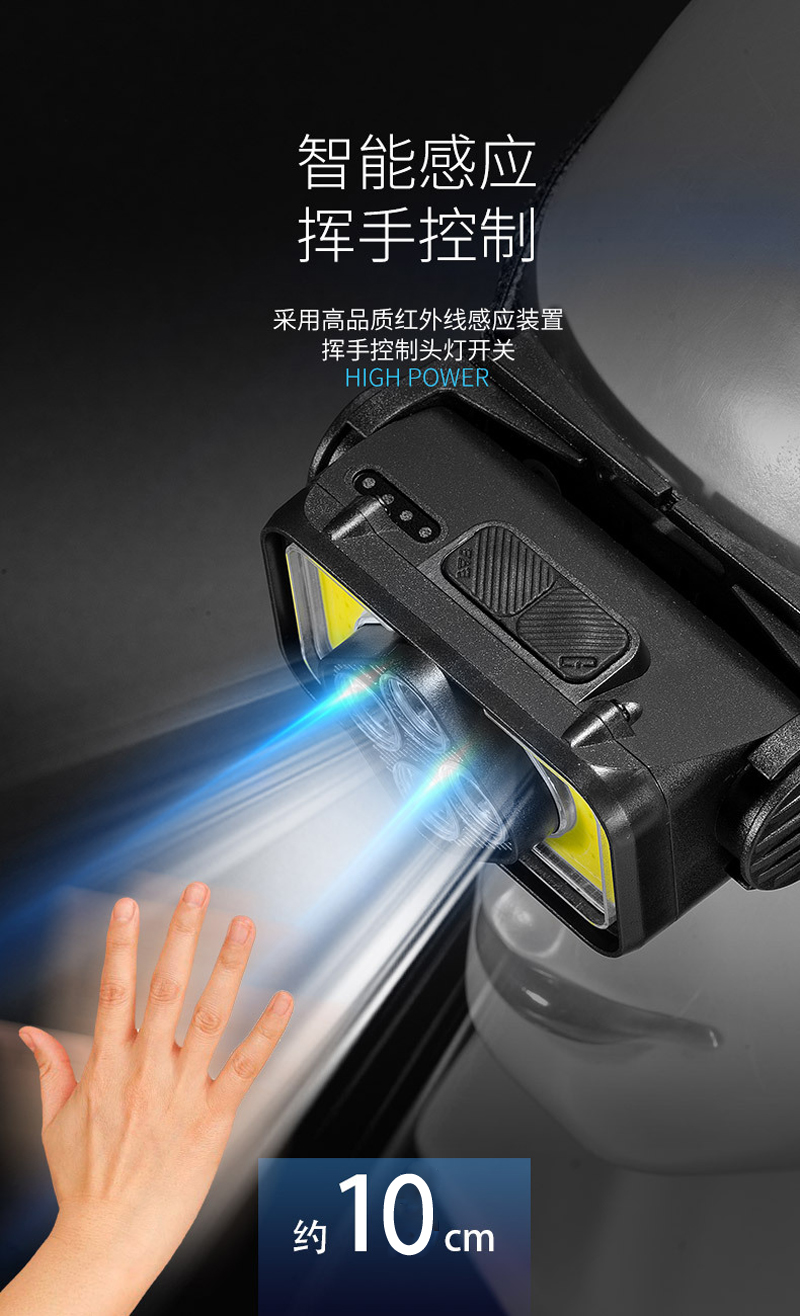 K363USB Charging Smart Wave Sensor Headlamp, COB cycling headlamp, Outdoor Camping lamp, miner's lamp, repair headlamp, camping lamp, Fishing lamp