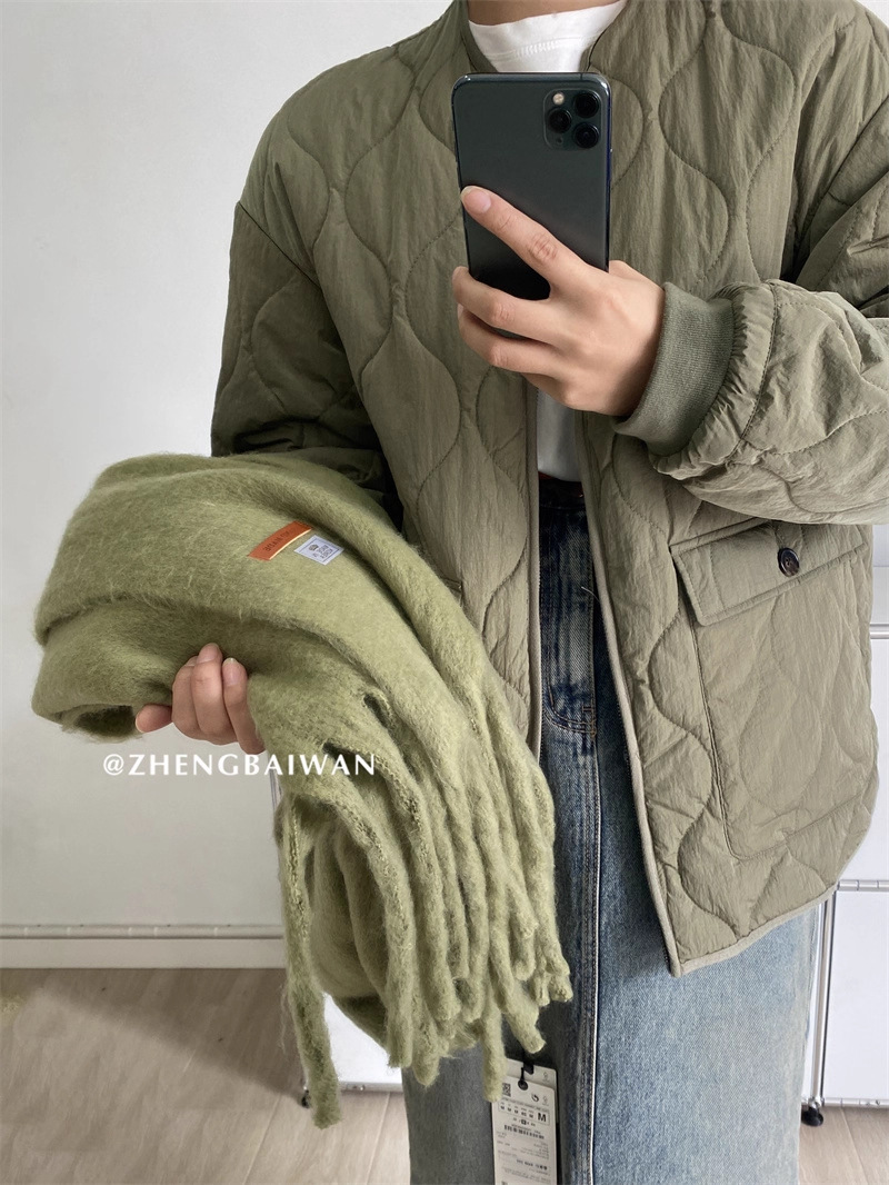 Kain blue Scarf Women's winter Korean style versatile thickened solid color shawl mohair high-end warm scarf
