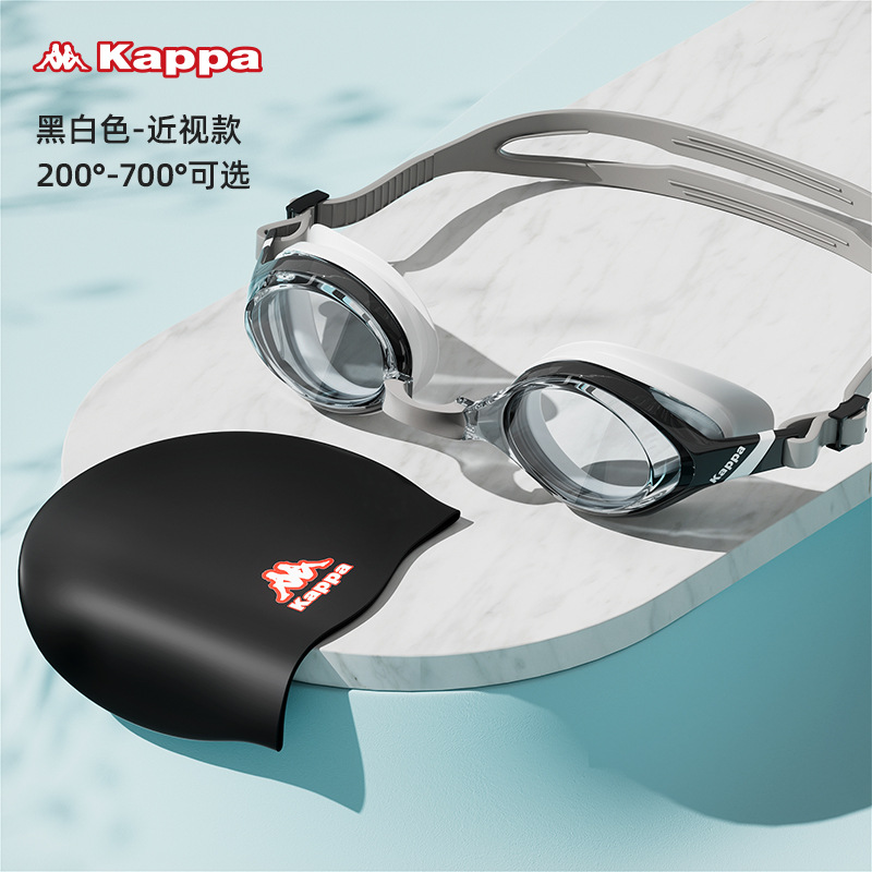 700 Black and white [Myopia Version] [Swimming Goggles + swimming Cap