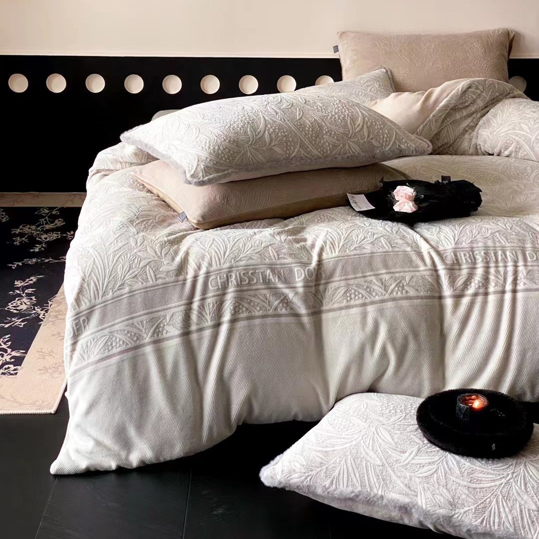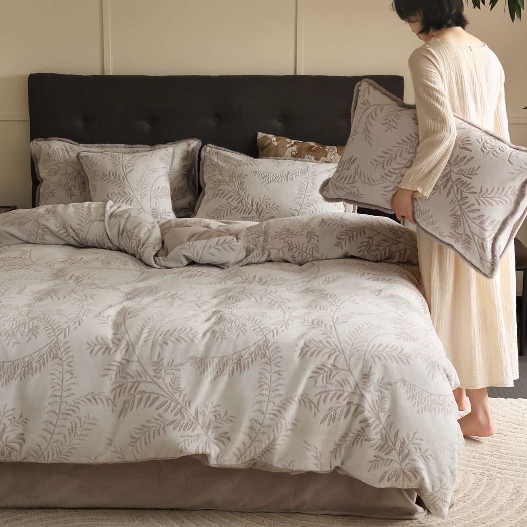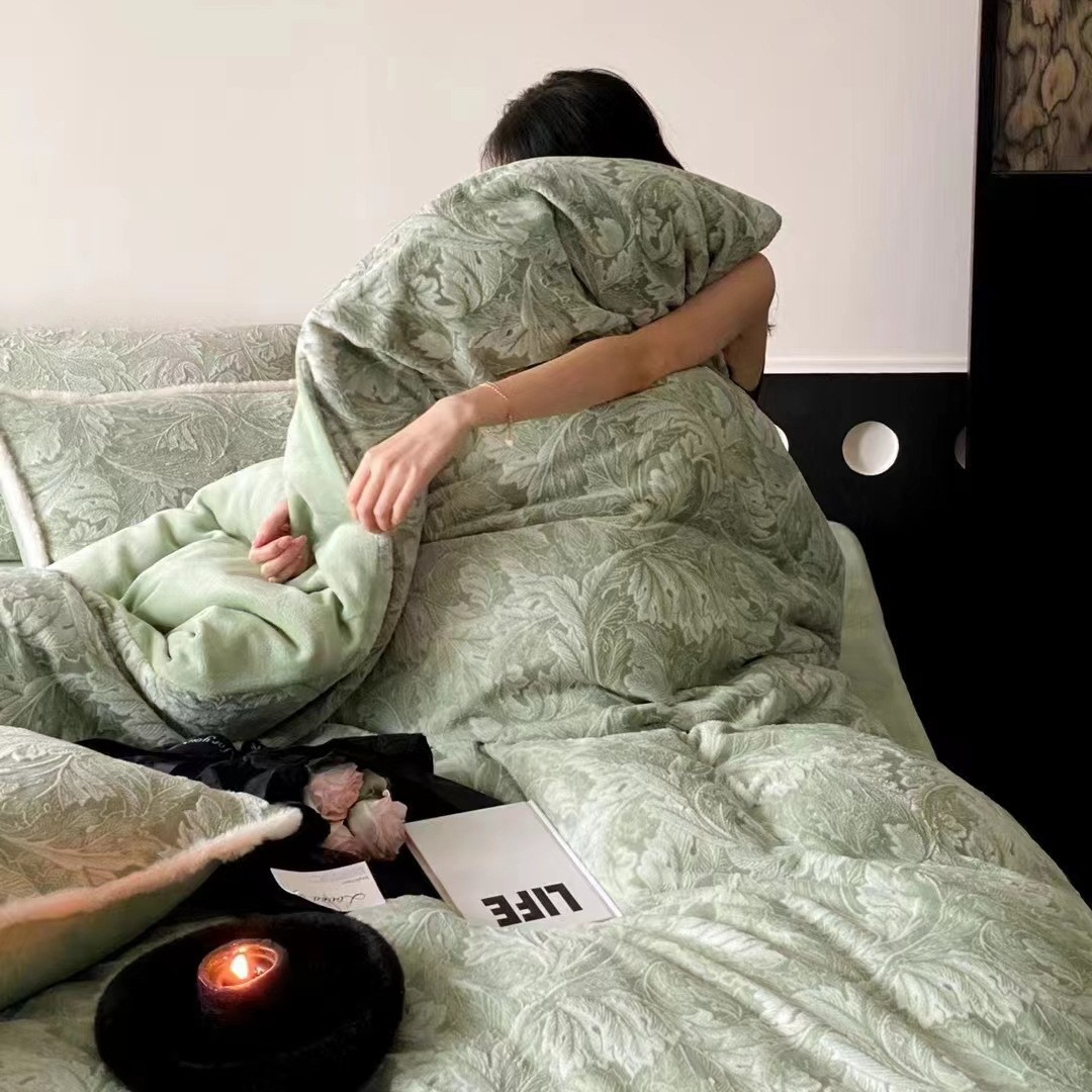 Keep warm and protect against the cold! 230g high-gram weight carved milk velvet four-piece set, thickened winter warm and anti-static velvet duvet cover