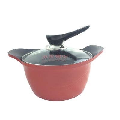 Kitchen Code: Korean original imported red universal glass lid double-handled soup pot, 20cm