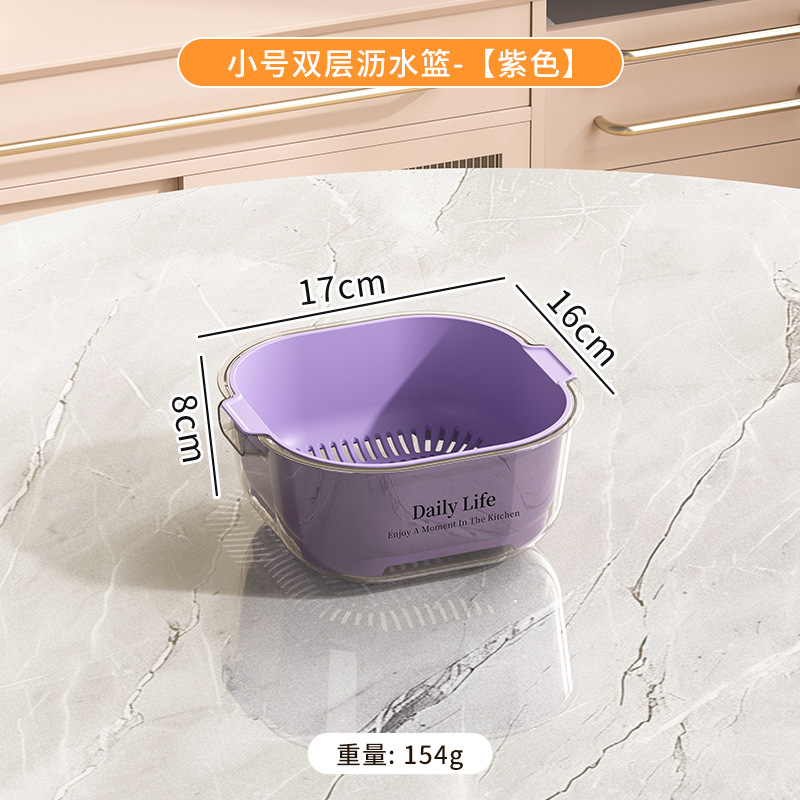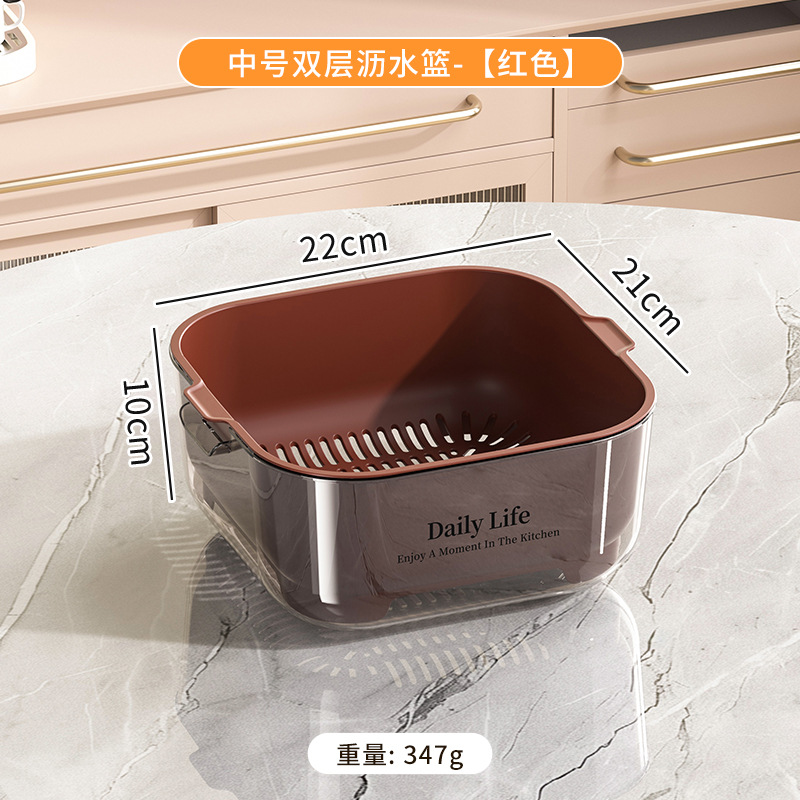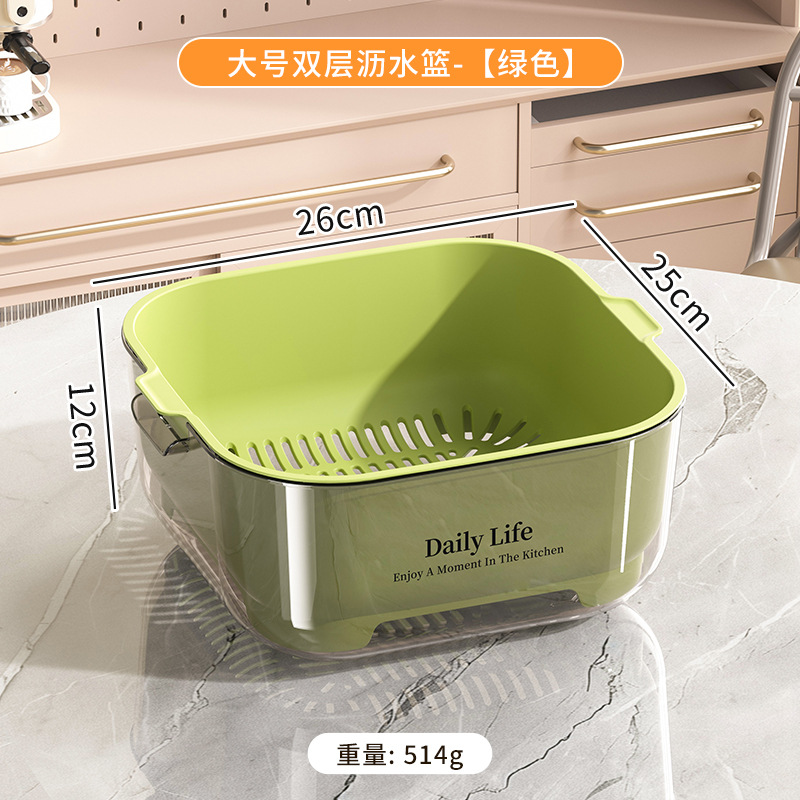 Kitchen double-layer draining basket, ins style, high appearance level, vegetable basin draining basket, large capacity for washing fruits and vegetables in the kitchen