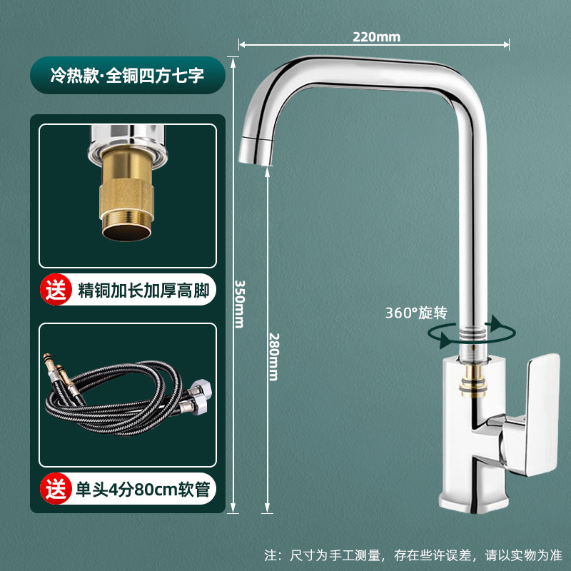 Cold and hot all-copper upgraded square seven-character (with 80 hose)
